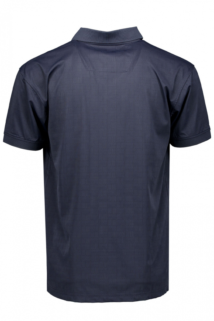AP Shirt 2607 från Arnold Palmer är en herrpiké i normal passform som passar lika bra på golfbanan som i vardagen. Den klassiska kragen med knappknäppning ger en elegant, tidlös look, medan mudd i ärmsluten och den mönstrade piké-strukturen ger plaggkänsla och stil utan att vara överdriven.
