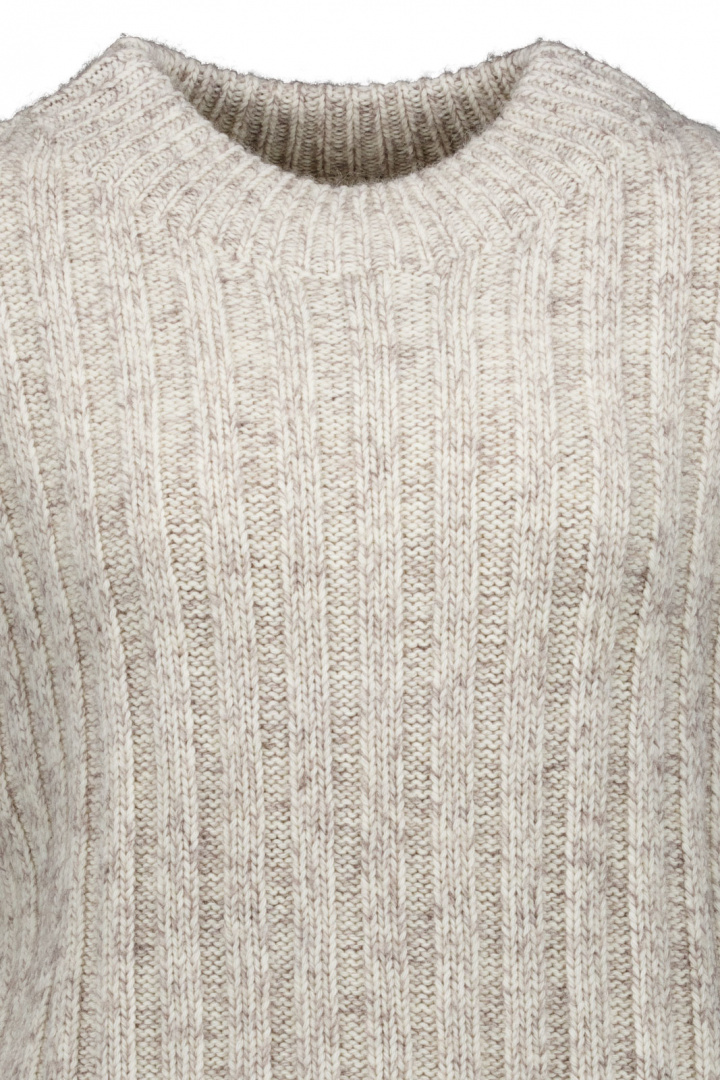 Materialet består av en välbalanserad fiberblandning som ger balans mellan mjukhet, hållbarhet och komfort: 71% ull, 25% polyamid och 4% alpacka. ullen bidrar med naturlig värme och fluff, alpackan ger extra mjukhet och lätthet, medan polyamiden bidrar till slitstyrka och bibehållen form över tid. Denna kombination gör tröjan varm nog för svala dagar samtidigt som den behåller sin passform och struktur tvätten igenom.