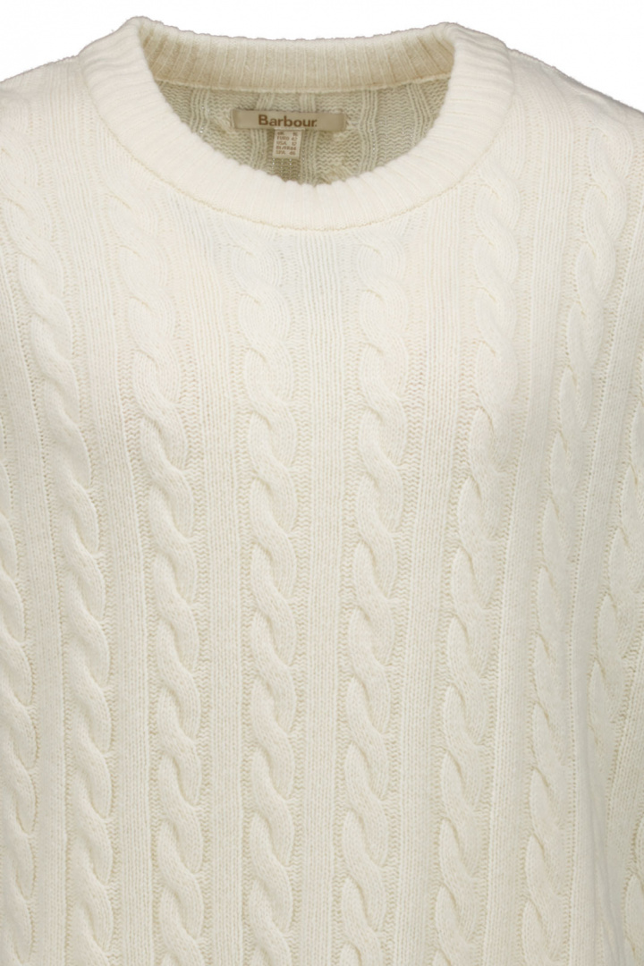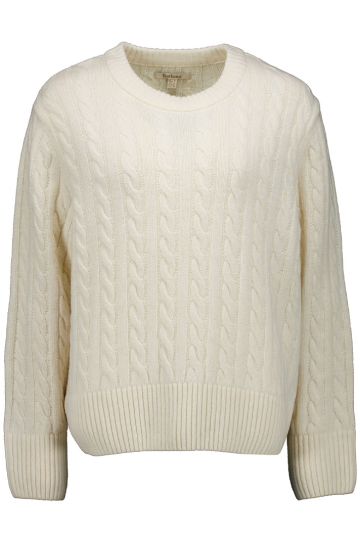 Upptäck Barbour Belford Knitted Jumper - en damtröja som förenar klassisk Barbour-stil med trygg vardagskomfort. Den passar i normal passform och har en rund halsringning som ger en ren och elegant silhuett. Mudd vid krage, ärmslut och nedtill ger en robust, välbyggd finish som håller formen och ger tröjan en mjuk, följsam känsla när du rör dig. Den kabelstickade strukturen ger textur och en tidlös look som enkelt kan bäras både till jeans och till mer uppklädda outfits.