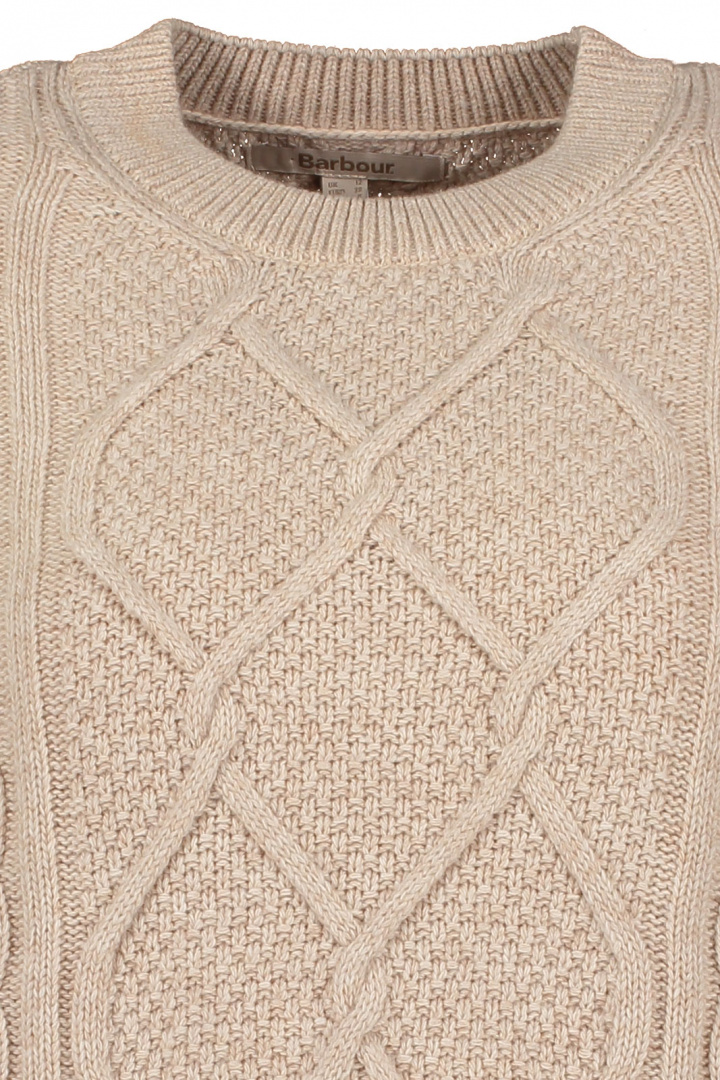 Stickad tröja från Barbour.Barbour Burne Crew Knitted Jumper.Artikelnummer: LKN1572- Normal passform- Rundad halsringning- Mudd i krage, ärmslut och nedtill- Stickad- Tröja damBarbour Burne Crew Knitted Jumper - En tidlös klassiker för damerUppgradera din garderob med Barbour Burne Crew Knitted Jumper, en elegant och funktionell tröja som passar perfekt för både avslappnade och mer uppklädda tillfällen. Med sin normala passform erbjuder denna tröja en bekväm känsla som gör att du kan röra dig fritt, oavsett aktivitet.Den rundade halsringningen ger ett stilrent och tidlöst utseende, medan de välutformade muddar i krage, ärmslut och nederkant bidrar till en perfekt passform och håller värmen där den ska vara. Den stickade strukturen ger tröjan både karaktär och en klassisk känsla.Tillverkad av en noggrant utvald blandning av 55% ull och 45% bomull, kombinerar Barbour Burne Crew Jumper både mjukhet och värmande egenskaper. Denna unika blandning säkerställer att tröjan är både hållbar och bekväm mot huden, vilket gör den till ett utmärkt val för kalla dagar.Med sin tidlösa design och högkvalitativa material är Barbour Burne Crew Jumper inte bara en investering i din stil, utan även i komfort och funktionalitet. Perfekt att bära över en blus eller som en fristående piece med jeans, ger den dig möjlighet att skapa olika outfits med lätthet.Ge dig själv eller någon du håller kär en tröja som kombinerar klassisk brittisk stil med moderna inslag. Gör Barbour Burne Crew Knitted Jumper till en del av din garderob idag och njut av dess eleganta charm säsong efter säsong.Tack för att du handlar i vår webbshop. Besök oss även i vår butik i Vingåker. Läs mer på www.vfo.se