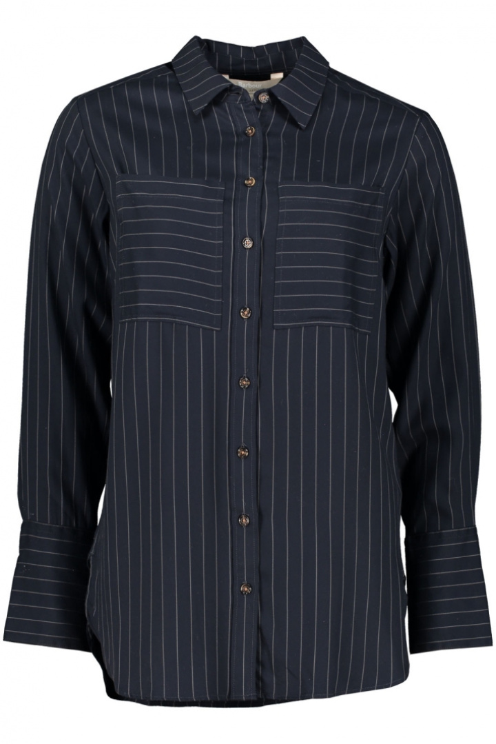 Skjorta från Barbour.Barbour Carrie Shirt.Artikelnummer: LSH1655- Normal passform- Klassisk krage- Fyrkantig manschett- Knappknäppning framtill- Två öppna bröstfickor- Randig- Skjorta damBarbour Carrie Shirt för dam är en skjorta i normal passform som fångar en tidlös, modern stil. Den randiga designen kombinerar elegans med en avslappnad känsla och gör att plagget passar lika bra till vardagsrutiner som till mer uppklädda outfits. Den klassiska kragen, den fyrkantiga manschetten och knappknäppningen framtill ger ett polerat uttryck medan två öppna bröstfickor ger praktiskt och tydligt detaljarbete utan att tynga helhetsintrycket.Tillverkad i 100% Lyocell erbjuder Barbour Carrie Shirt en mjuk hand och en skön drape som faller snyggt över kroppen. Lyocell är svalkande och andningsbart, samtidigt som det transporterar fukt effektivt vilket gör skjortan bekväm att bära under längre dagar. Den randiga ytan ger en modern twist som enkelt kan stylas med allt från jeans till mer formella byxor eller en blazer för olika tillfällen.Denna skjorta är ett bra val för den som söker en mångsidig, hållbar och lättskött garderobsfavorit. Barbours arv av klassisk brittisk stil möter ett högkvalitativt, miljömedvetet material i en skir och bekväm skjorta som passar både till jobbet och ledig fritid. Välj Barbour Carrie Shirt när du vill ha en tidlös randig dam skjorta som levererar komfort, funktion och stil i varje detalj.Tack för att du handlar i vår webbshop. Besök oss även i vår butik i Vingåker. Läs mer på www.vfo.se