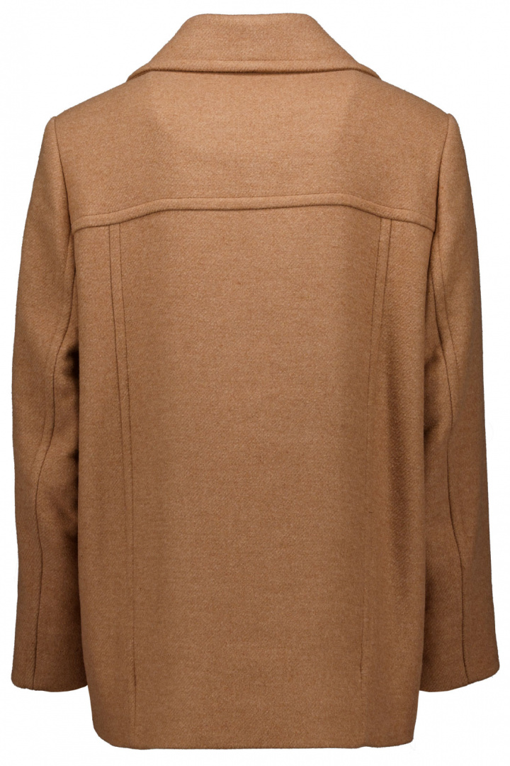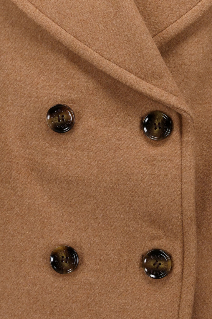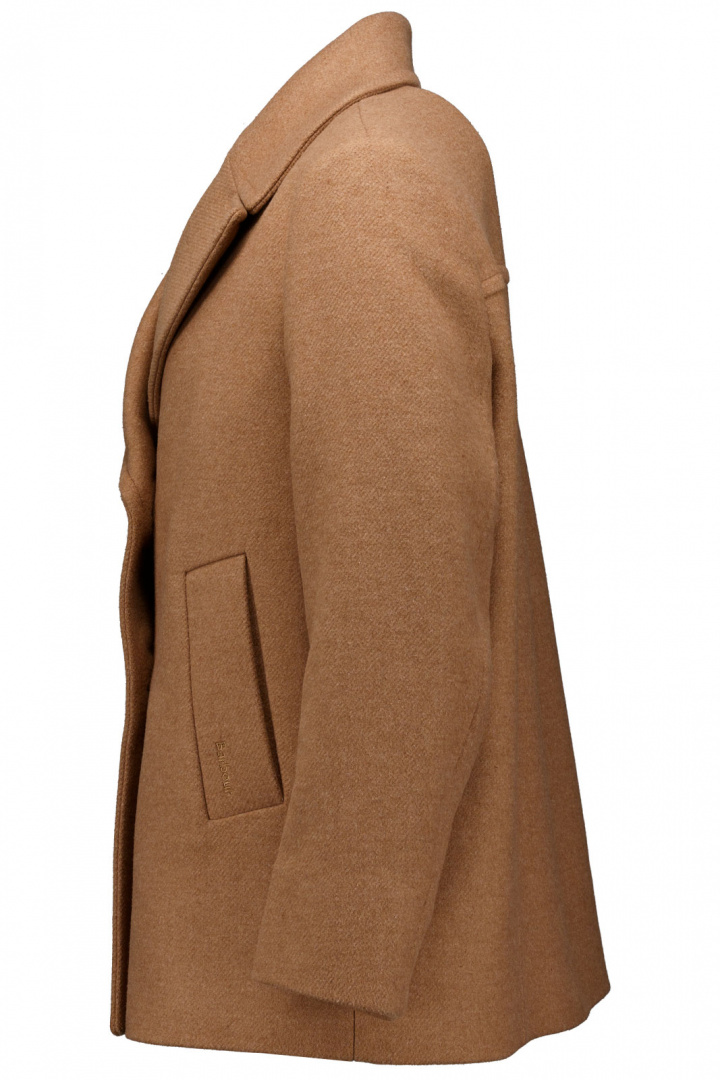Yttertyget bygger på en ullblandning där 65% av materialet är ull, tillsammans med 23% polyester, 10% polyamid och 2% akryl. Denna sammansättning ger en varm, mjuk och hållbar känsla med bra drape och formbehållning i vardagligt bruk. Fodret är polyester till 100%, vilket bidrar till en smidig och bekväm insida, medan ärmfodret består av 55% polyester och 45% viskos för god komfort och rörelsefrihet under hela dagen. Denna kombination gör jackan lätt att bära över en tunn tröja eller klänning, samtidigt som den behåller en elegant silhuett.