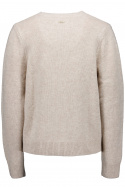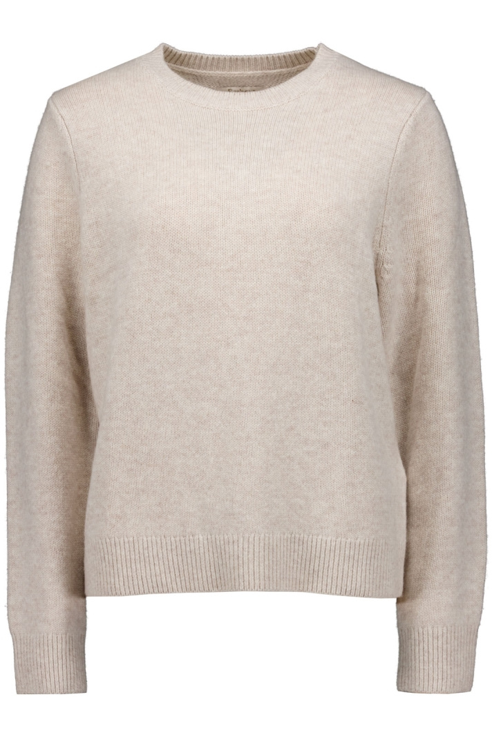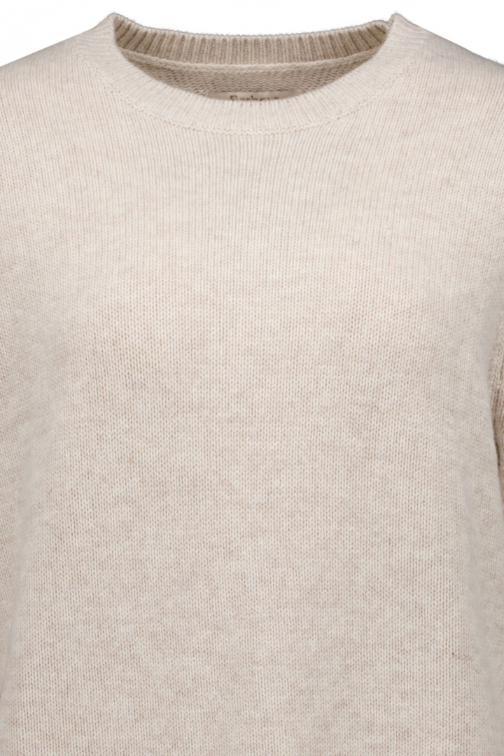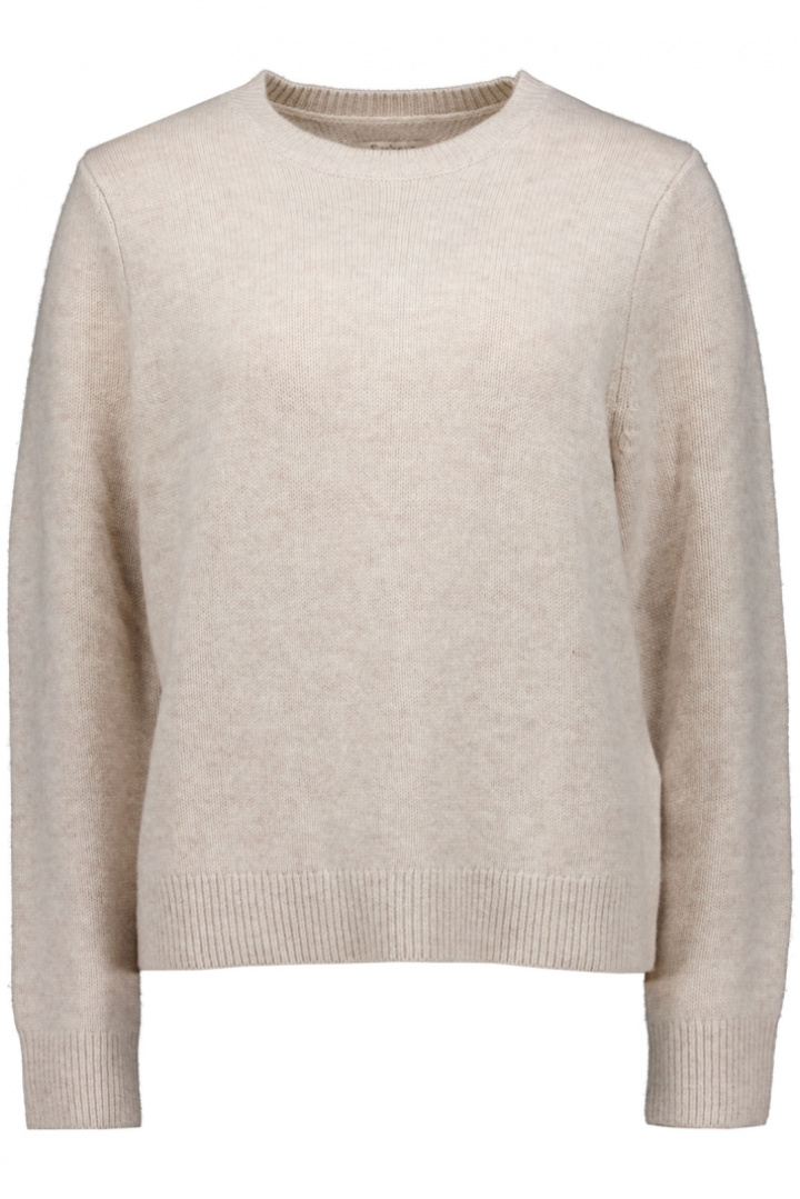 Designen präglas av en rundad halsringning som ger en feminin siluett, medan muddarna i krage, ärmslut och nedtill bidrar med en klassisk ribbstickad finish som håller formen över tid. Den finstickade strukturen ger tröjan ett elegant uttryck som är lätt att klä upp eller ner beroende på resten av din outfit.