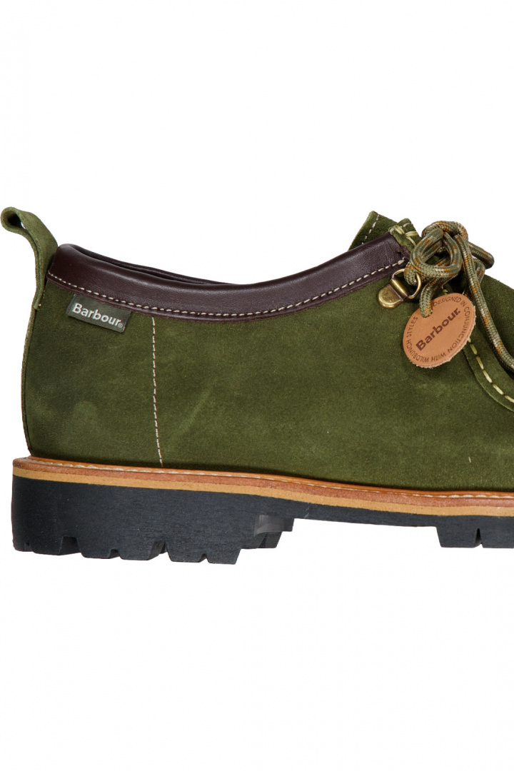 Skon bärs upp av en praktisk snörning och loaferinspirerad silhuett som gör den mångsidig för både vardag och lite mer dressade tillfällen. Denna kombination av läder, mocka och en robust gummisula gör att skorna känns lika slitstarka som stilfulla, samtidigt som de känns bekväma från första steget. Barbour X Wild Bunch erbjuder därmed ett par skor som är lika lämpade för stadslivets krav som för en avslappnad helg.