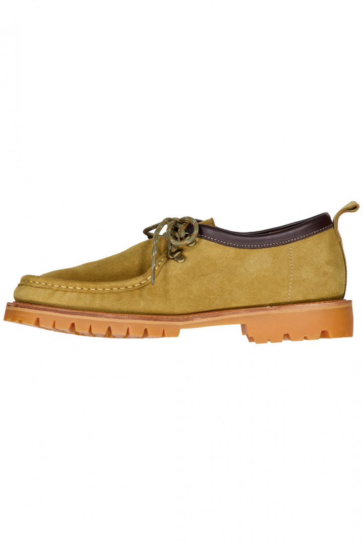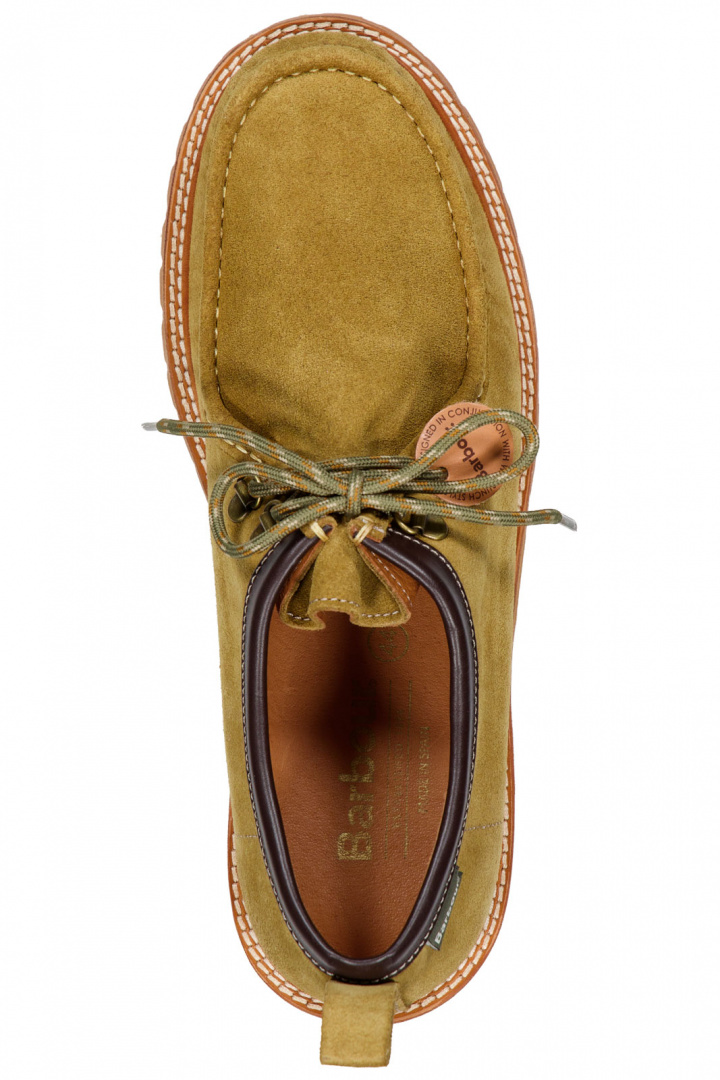 Skon bärs upp av en praktisk snörning och loaferinspirerad silhuett som gör den mångsidig för både vardag och lite mer dressade tillfällen. Denna kombination av läder, mocka och en robust gummisula gör att skorna känns lika slitstarka som stilfulla, samtidigt som de känns bekväma från första steget. Barbour X Wild Bunch erbjuder därmed ett par skor som är lika lämpade för stadslivets krav som för en avslappnad helg.