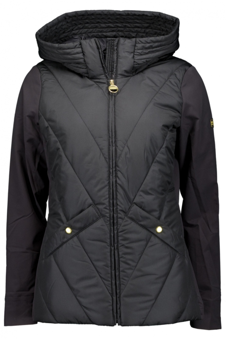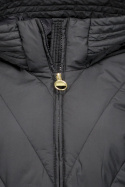 Upptäck B.Intl Diablo Quilte Jacka från Barbour i dammodell med normal passform, en quiltad jacka som kombinerar klassisk elegans med praktisk funktion. Huvan står redo när vinden tar tag och är försedd med dragsko för att du ska kunna anpassa skyddet efter vädret. Den framåtrullade dragkedjan gör på- och avklädning enkelt, medan två fickor med tryckknapp ger säkert förvaring av nycklar och småsaker när du är ute och går. Jackan är tillverkad i 100% polyester både vad gäller foder och yttertyg, medan fyllningen består av återvunnen polyester till 100%, vilket ger bra värme utan att tynga jackan.
