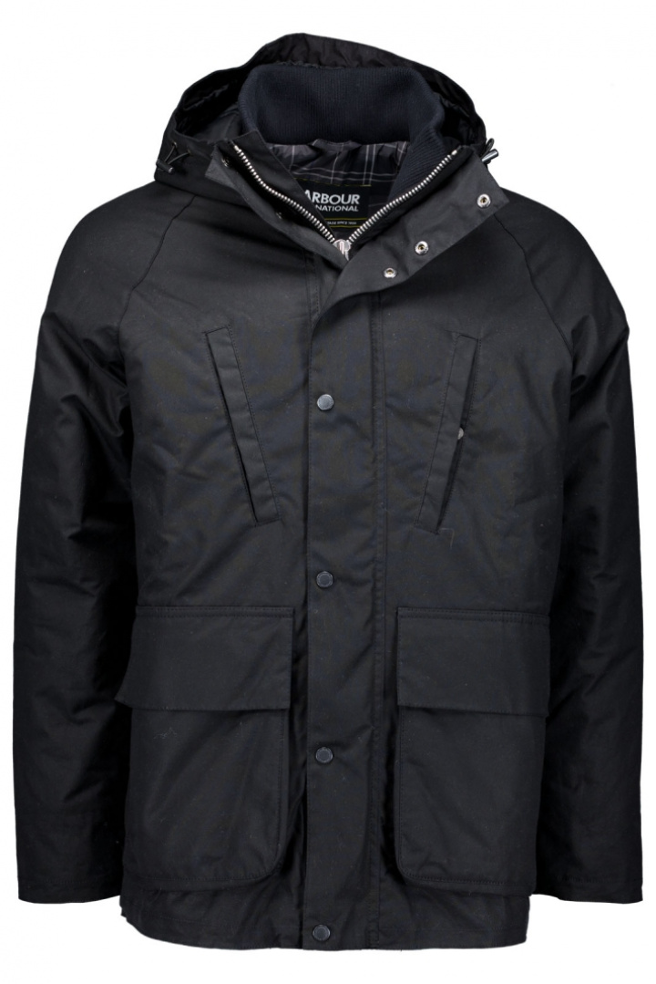 Upptäck B.Intl Oakdale Wax Jacka från Barbour - en herrjacka i normal passform som förenar klassisk brittisk design med praktisk funktion. Den dolda dragkedjan framtill ger en snygg, ren silhuett medan den vaxade bomullen ger god slitstyrka och vattenavvisande egenskaper, perfekt för vardagligt väder och lättare regn. Den stora huvan med dragsko skyddar mot vind och kyla, och den ribbade kragen plus mudd i ärmsluten ger extra komfort under långa dagar ute.