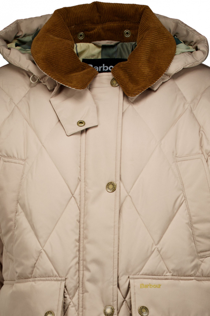 Dunjacka från Barbour.Rds Barbour Long Yasmi.Artikelnummer: LQU1855- Normal passform- Avtagbar luva med dragsko- Dold dragkedja framtill- Två öppna fickor- Två fickor med lock och tryckknapp- Två öppna bröstfickor- Quiltad- Dunjacka damUpptäck Barbour Long Yasmi Jacka - en damdunjacka i klassisk Barbour-quiltad stil med normal passform som kombinerar tidlös elegans med praktisk funktion. Den avtagbara luvan med dragsko ger dig flexibilitet: välj extra skydd mot kyla när det behövs, eller en renare silhuett utan huva för en mer strömlinjeformad look. Den dolda dragkedjan framtill ger en snygg, ren linje samtidigt som den gör på- och avklädning smidig. Jackan erbjuder smart förvaring med två öppna fickor framtill, två fickor med lock och tryckknapp samt två öppna bröstfickor - perfekt för både vardagsbruk och uteaktiviteter där du behöver enkel åtkomst till dina saker.Yttermaterialet är polyester 100%, och fodret består av polyester 100% för komfort och lätthet mot kroppen. Fyllningen består av dun (80%) och fjädrar (20%), vilket ger bra värmeeffekt i ett lättare quiltat plagg. Detaljer i bomull (100%) bidrar till hållbarhet och en klassisk Barbour-känsla som håller över tid. Den quiltade konstruktionen kombinerar värme med en tidlös, modernt sportig stil som passar både vardag och fest.Barbour Long Yasmi är ett smart val om du vill ha en mångsidig dunjacka som håller dig varm utan att väga för mycket, i en design som andas kvalitet och elegans. Perfekt för damen som inte vill kompromissa mellan stil och funktion - välj lång Yasmi för en säker och stilfull följd i höst, vinter och övergångsperioden.Tack för att du handlar i vår webbshop. Besök oss även i vår butik i Vingåker. Läs mer på www.vfo.se