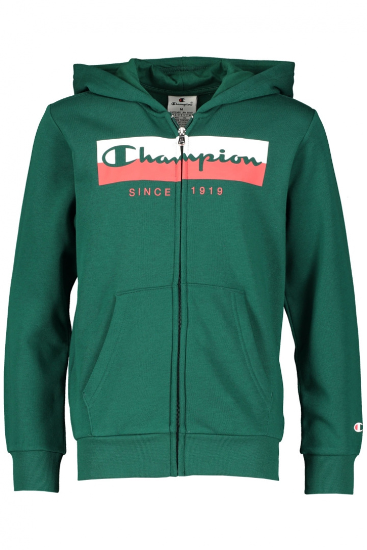 Tröja från Champion.Hooded Full Zip Sweatshirt.Artikelnummer: 306839- Normal passform- Luva- Dragkedja framtill- Printat logotyp- Öppna framfickor- Mudd i ärmslut och tröjslut- Tröja barnTack för att du handlar i vår webbshop. Besök oss även i vår butik i Vingåker. Läs mer på www.vfo.se