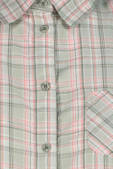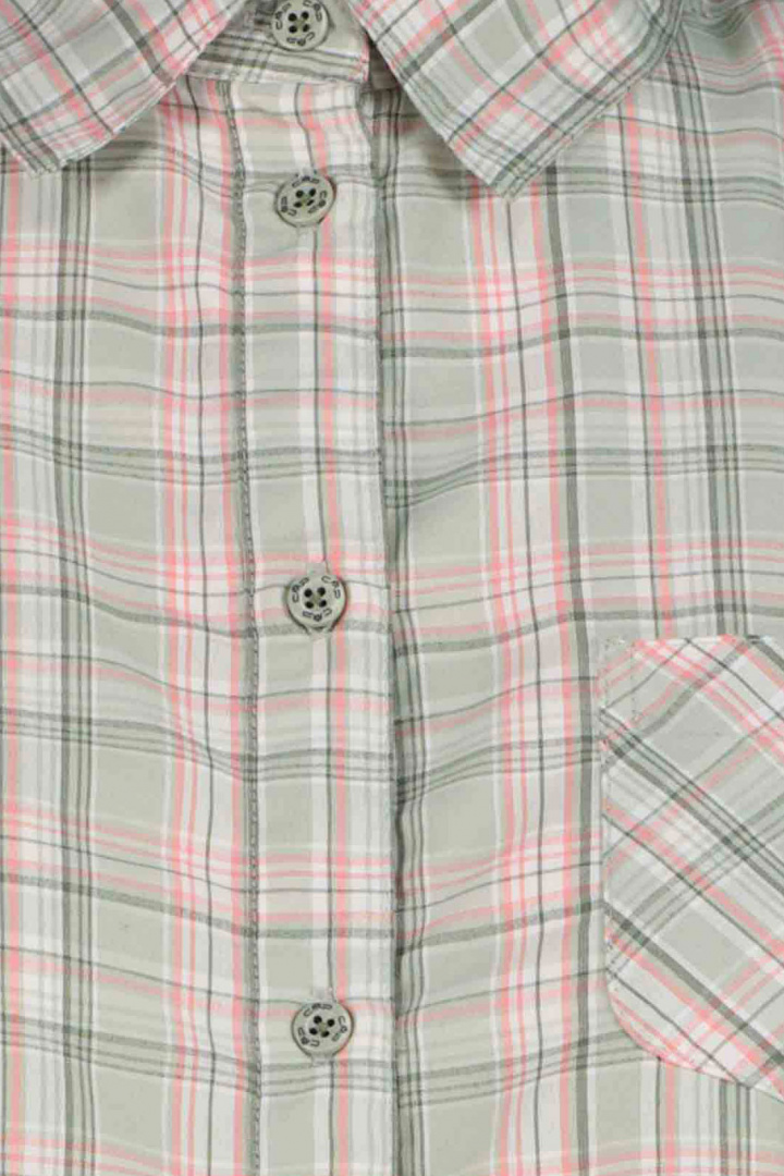 Skjortan pryds av en trendig rutmönstring och har en praktisk öppen bröstficka som bidrar till både funktionalitet och stil. Den är designad för att ge en avslappnad men chic look som passar perfekt ihop med både jeans och kjolar.