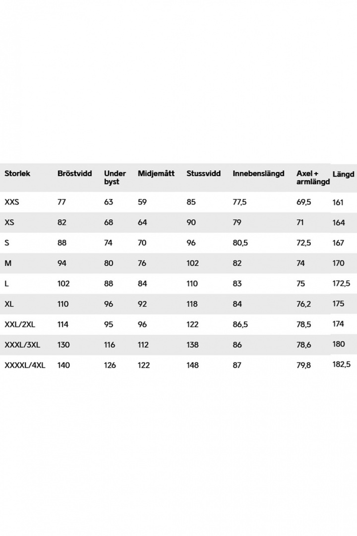 - Storlekstabell sista bilden