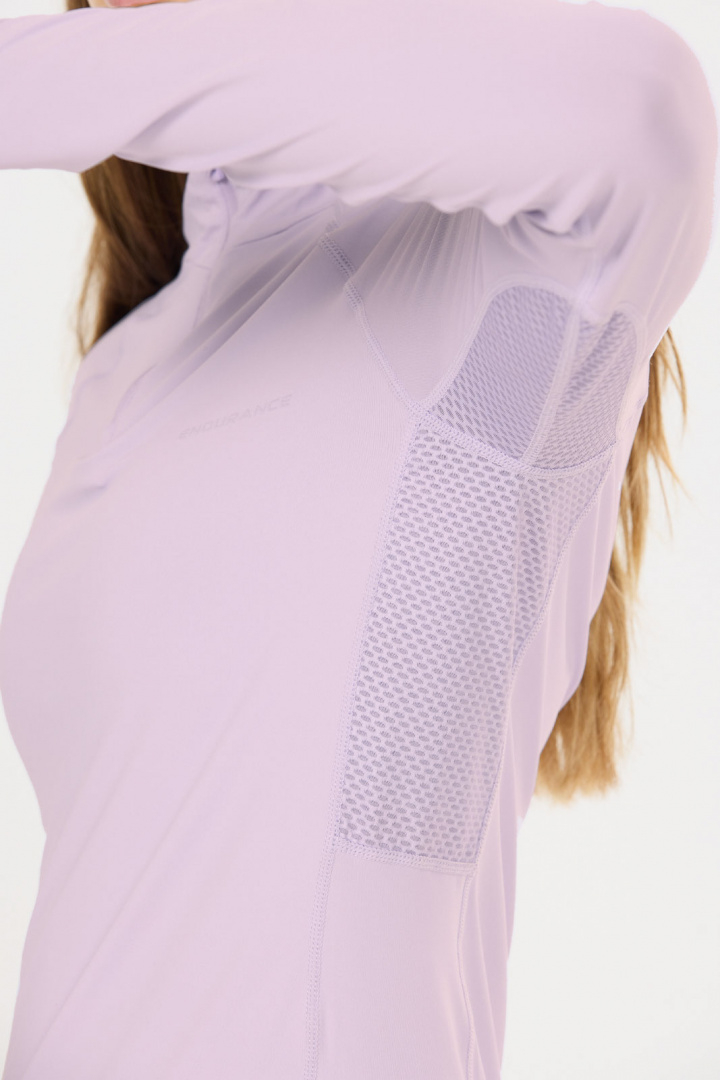 Upptäck Chrissie W Midlayer Tröja från Endurance - en damtröja med normal passform som passar lika bra till träning som till vardags. Den stående kragen med dragkedja ger enkel ventilation och möjlighet till snabb temperaturreglering när du kör intervaller eller kyliga morgnar. Det diskreta printade logotypet ger en stilren sportig touch utan att ta över. Mesh under armarna ger extra ventilation där det behövs, vilket gör tröjan bekväm även under hög intensitet.