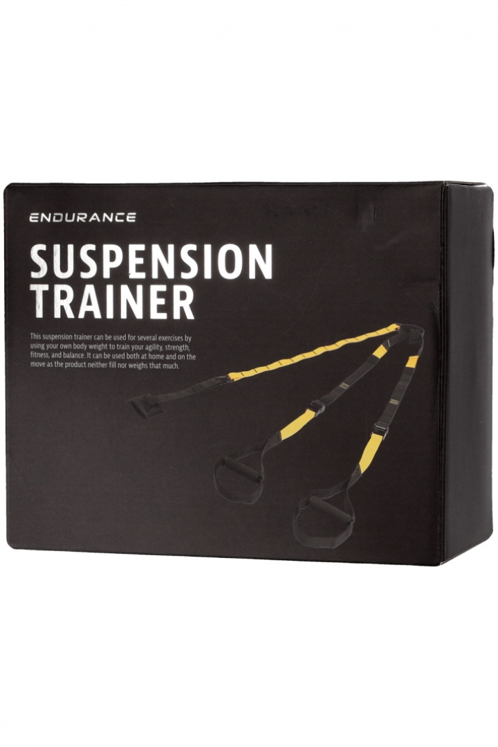 - Montering: Ett dörrankare ingår när du köper din Suspension Trainer vilket innebär att du kan använda en dörr som ankarpunkt. Slå dörrankaret över dörrens ovansida och stäng den, klicka på karbinhaken i öglan och träna.