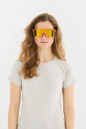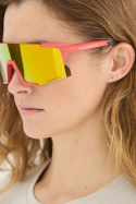 - Sportglasögonen har en lätt halvbågsdesign med speglade polykarbonatglas och en båge av termoplastiskt gummi och metall