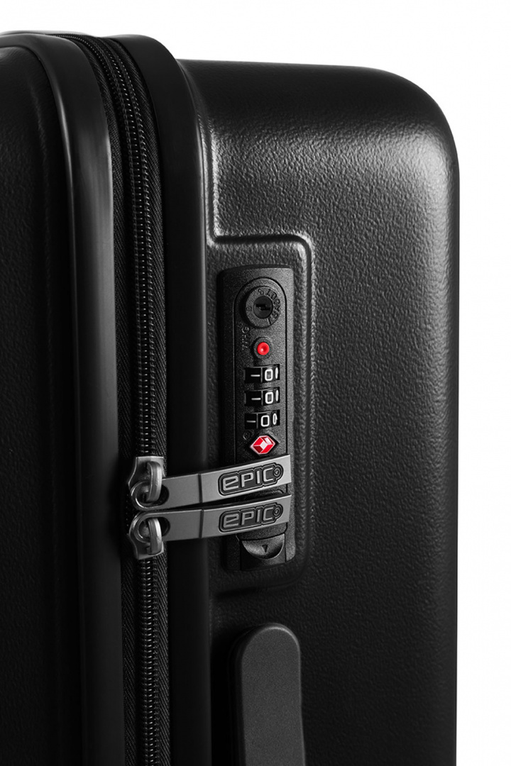 - För extra säkerhet och sinnesro är den utrustad med ett fullt integrerat, högkvalitativt TSA-kombinationslås, vilket gör resor bekymmersfria - även till USA. Det slitstarka skalet med skandinavisk design är både slagtåligt och lätt, med en reptålig yta som bevarar dess stilrena utseende. Det robusta Airspeed DualTRAK-hjulsystemet säkerställer en jämn och smidig rullning på alla underlag