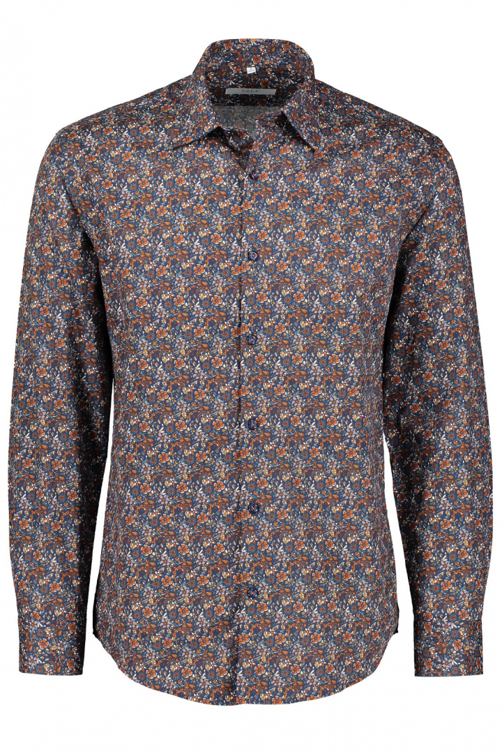 Den klassiska kragen och de vinklade manschetterna ger skjortan ett tidlöst utseende med en subtil twist. Knappknäppningen framtill är både praktisk och stilren, medan den öppna bröstfickan erbjuder en funktionell detalj som är perfekt för att förvara småsaker. Det mönstrade tyget skapar liv och ger skjortan ett unikt och personligt uttryck.