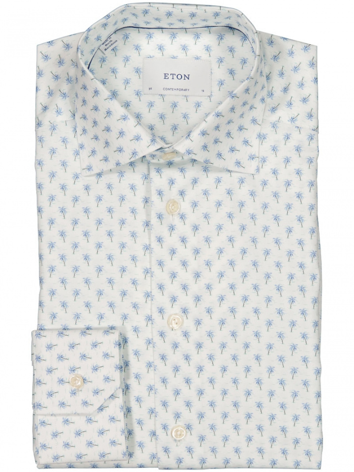 Elegant, mönstrad skjorta från Eton i en modern Contemporary fit som sitter skräddat utan att kännas åtsittande. Cut away-kragen ger ett stilrent och uppdaterat uttryck som fungerar både till kostym och till en mer avslappnad kavaj. Den vinklade manschetten är en diskret, samtida detalj som lyfter helhetsintrycket.