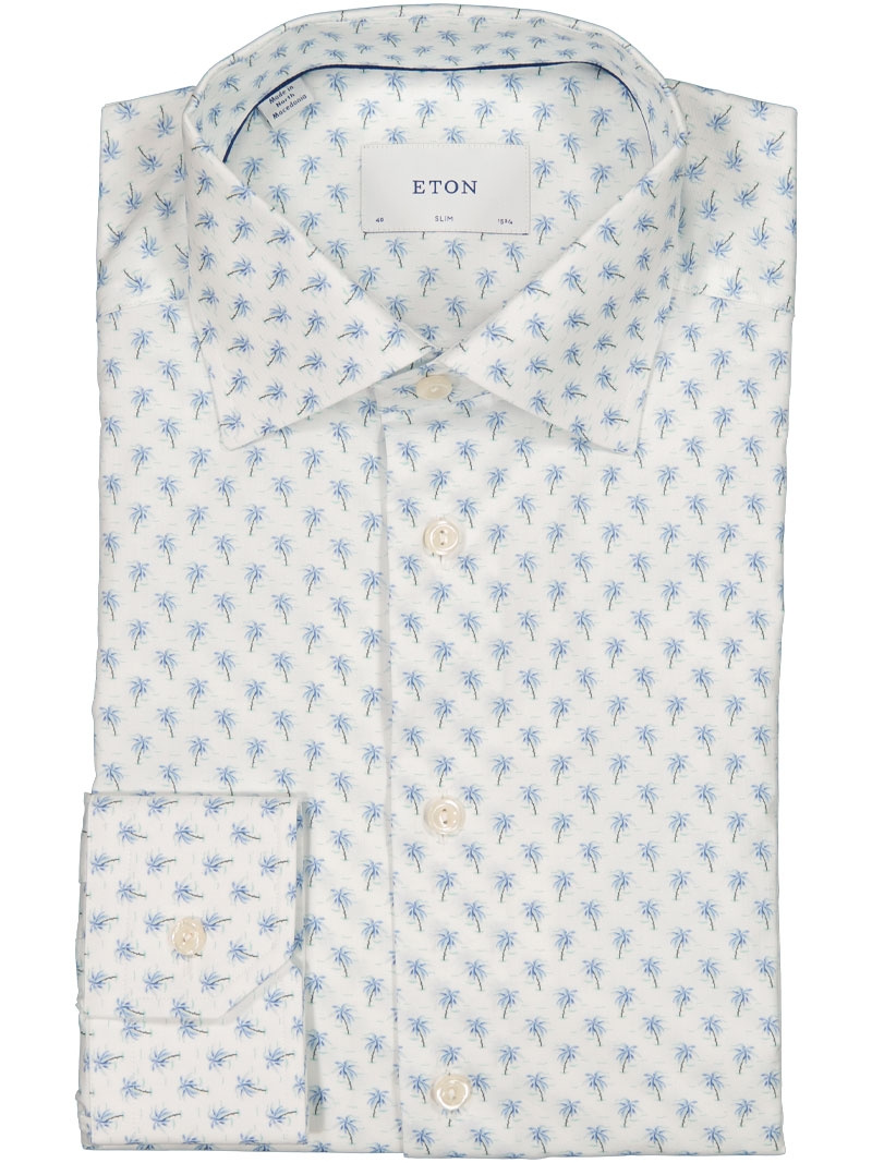 Cut Away Single Slim skjorta från Eton - en mönstrad slim fit herrskjorta i 100% bomull som kombinerar modern design med hög komfort. Den rena, cut away-kragen och den vinklade manschetten ger ett sofistikerat intryck som fungerar lika väl under kavajen som på egen hand vid middag eller kundmöte.
