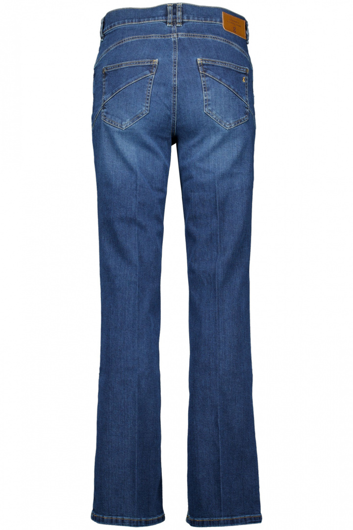 Zuri126 från Gardeur är en damjeans som kombinerar modern snitt med vardagskomfort. Den har normal midja och en slim fit genom höfterna och låren som övergår i en diskret bootcut nedtill, vilket ger en smickrande silhuett och god rörelsefrihet. Den praktiska knapp- och dragkedjeflyen gör den enkel att ta på och av, och modellen följs av en klassisk fickdesign - Fwmficksmodell - som ger den rätta vardagliga funktionaliteten utan att kompromissa med stilen.