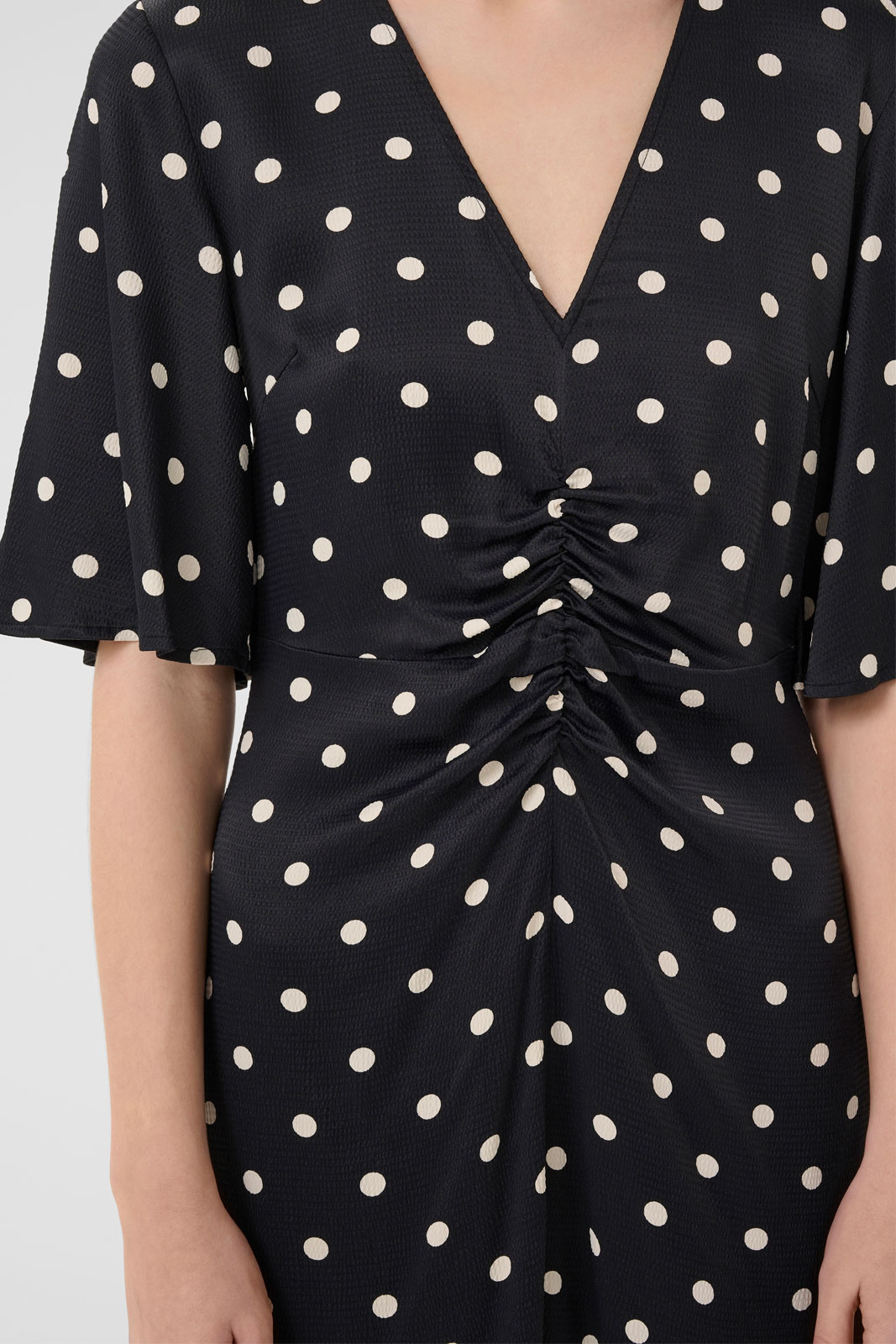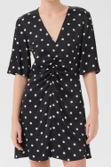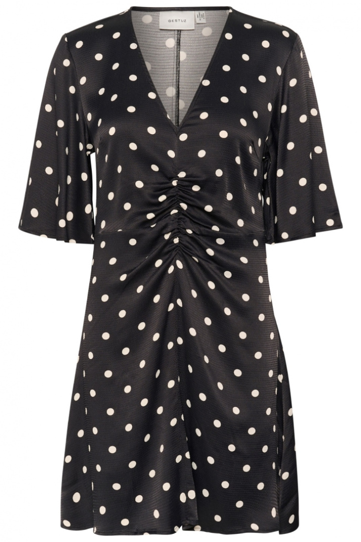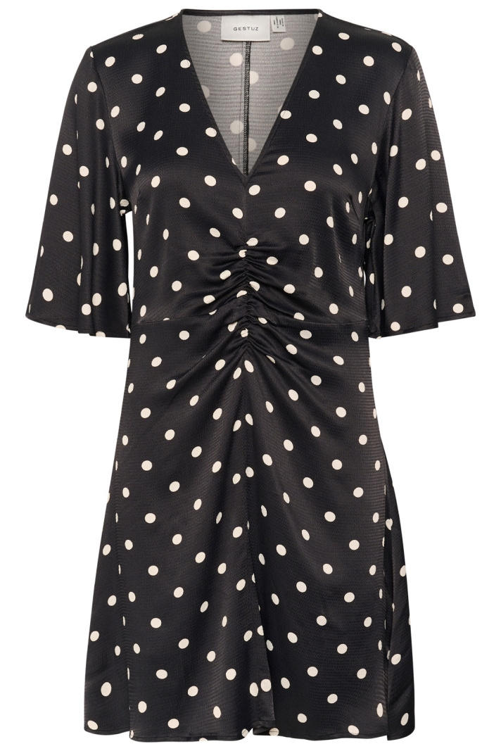 Gestuz Gzdotta P Ss Dress är en prickig klänning med normal passform som passar lika bra till vardag som till fest. Den V-ringade halsen ger ett feminint och modernt uttryck samtidigt som den dolda dragkedjan i sidan gör på- och avklädning smidig och diskret. Den tidlösa prickiga designen gör klänningen enkel att matcha med olika accessoarer och skodon, från sneakers till klackar. Tillverkad i en mjuk viscose/elastan-blandning (98% viscose och 2% elastan) med ett foder i 100% viscose, erbjuder den en behaglig drapering, god komfort och lite återfjädring för en följsam passform. Denna kombination av material ger ett svalkande, andningsbart intryck samtidigt som elastanen bidrar till rörelsefrihet när du rör dig genom dagen. Passformen är avslappnad men följsam, vilket ger en elegant silhuett utan att kännas åtsittande. Fodret känns mjukt mot huden och gör klänningen bekväm att bära längre stunder. En perfekt val om du söker en stilren klänning som är lätt att styla - plagg som fungerar säkert i garderoben år efter år. Välj Gestuz Gzdotta P Ss Dress för en prisvärd kombination av kvalitetskänsla, tidlös design och praktisk funktion.