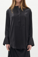 Tillverkad av ett behagligt tyg bestående av 97% viskos och 3% elastan får skjortan ett mjukt, följsamt fall som följer kroppens rörelser utan att kännas klistrig. Visko­sens ljuva glans och den lättare draperingen ger en exklusiv känsla mot huden, samtidigt som elastanet ger lite rörelsefrihet så att passformen känns bekväm hela dagen. Denna kombination gör Arweniw Shirt till ett pålitligt val för den som söker en mångsidig skjorta som enkelt kan klä upp eller ner. Den dolda knappknäppningen ger en ren front och låter det ikoniska formspråket tala för sig själv, medan den maokragen behåller en stilren och tidlös karaktär.