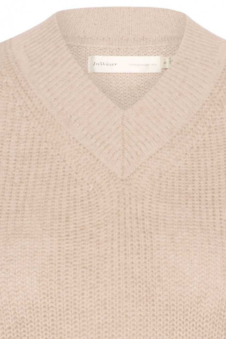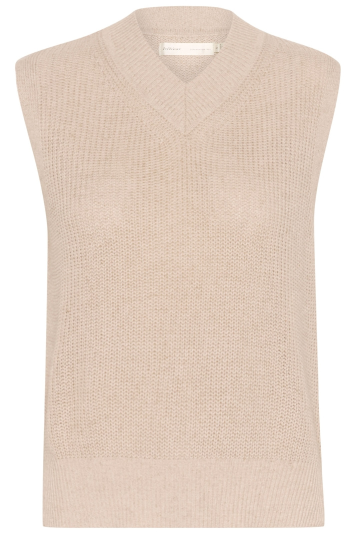 Whisperiw Slipover Väst från Inwear är en tidlös damväst i normal passform som enkelt höjer din look oavsett säsong. Den V-ringade halsen ger en modern och ren profil medan den ribbade kanten vid halsringen ger både struktur och komfort. Den stickade ytan tillför subtil textur och gör plagget lätt att styla över en skjorta, en enkel t-shirt eller under en kavaj för en uppbyggd, men ändå avslappnad stil.