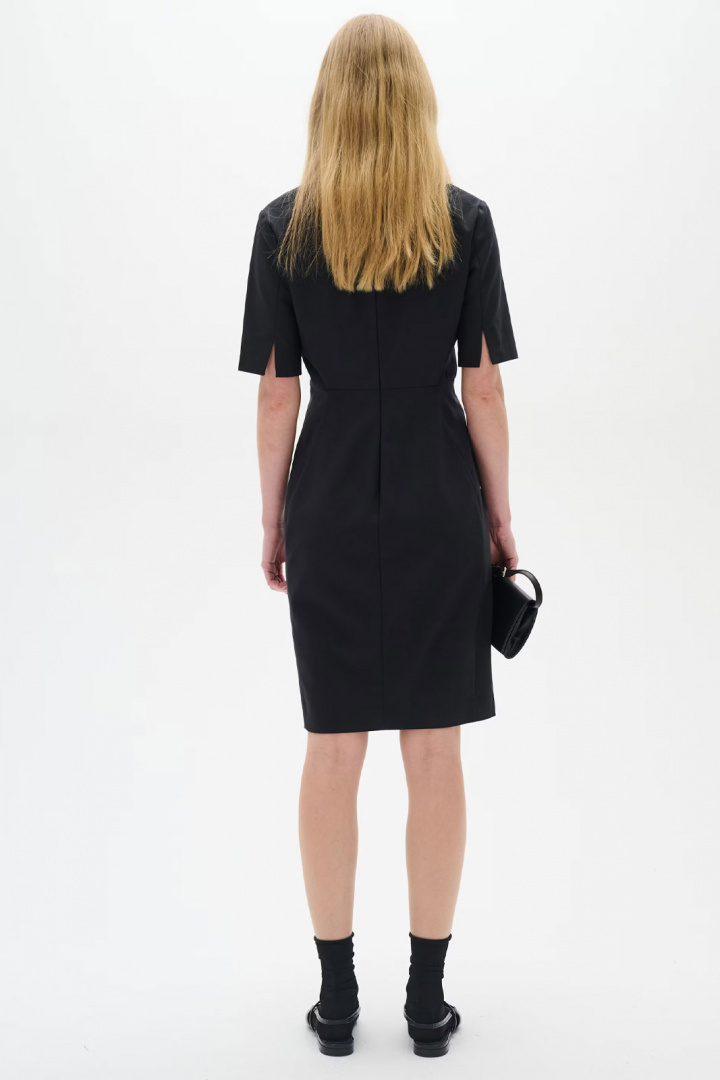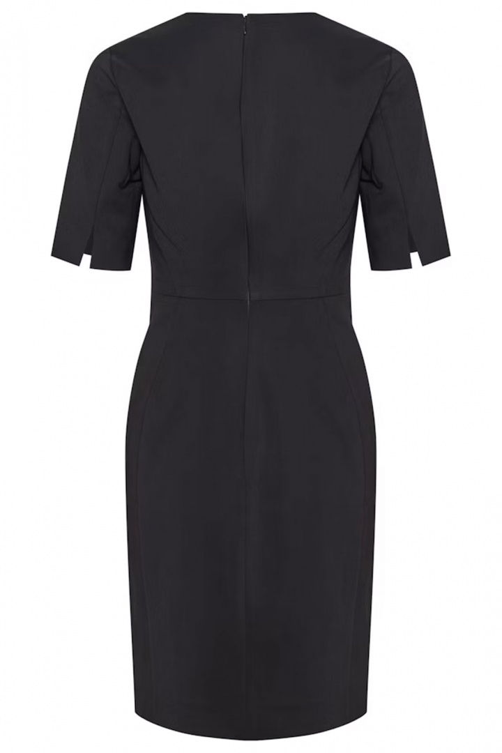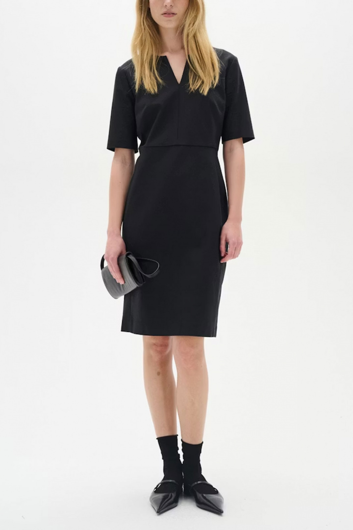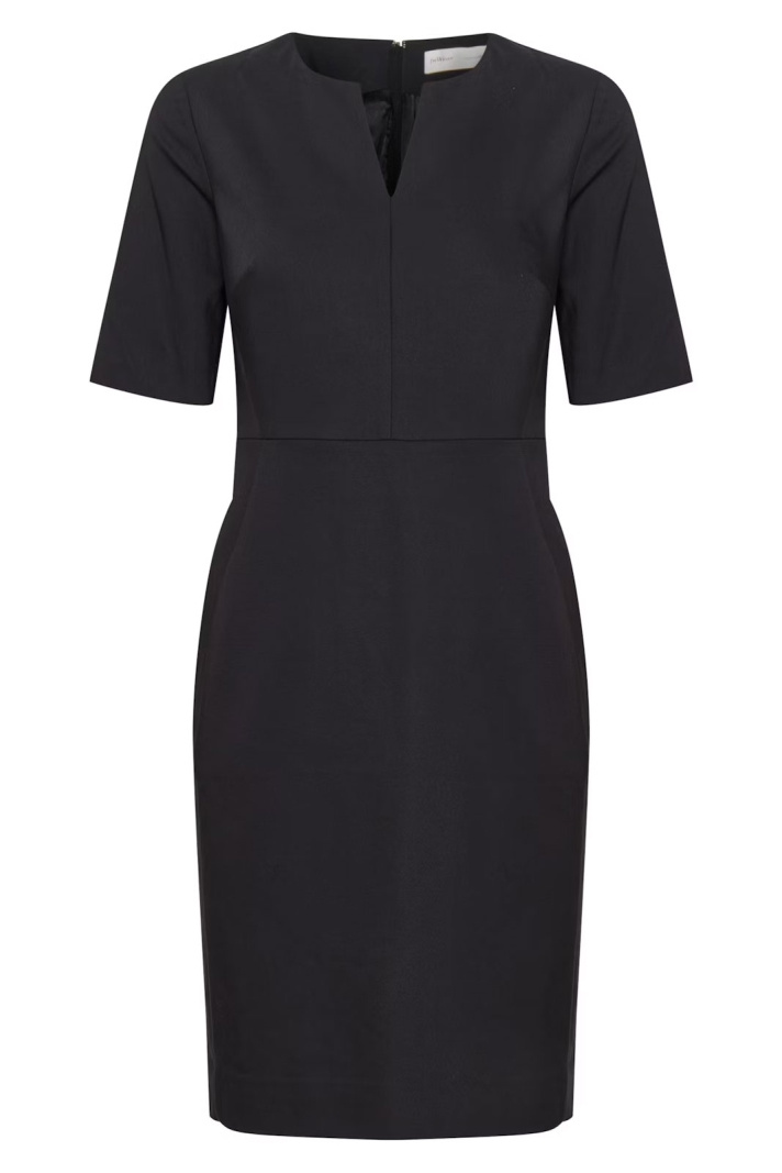 Upptäck Zella Dress från Inwear - en knälång damklänning som kombinerar modern elegans med en smickrande, figursydd siluett. Den har en normal passform med en tight, kroppsnära känsla som följer konturerna utan att kompromissa med rörelsefriheten. Den V-ringade halsen ger en klassisk, feminin prägel medan den dolda dragkedjan i ryggen bidrar till en ren, elegant look som är enkel att ta på och av. Det här är en klänning som passar lika bra till kontoret som till kvällens bål eller middagar, tack vare den stilrena designen och den skarpa längden som når knäna.