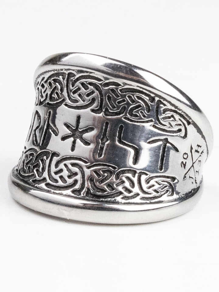Ring från Jernhest.Balder Ring.Artikelnummer: RBr18100- En ring med mönster som inspireration från dom nordiska Vikingarna- Runskrift där översättningen är "Jernhest"- Material: 100% Kirugiskt StålInnermått:Strlk 7 - 17,3 mmStrlk 8 - 18,1 mmStrlk 9 - 18,9 mmStrlk 10 - 19,8 mmStrlk 11 - 20,6 mmStrlk 13 - 22,3 mm(Reservation för att storlek kan diffa på +/- 0,1mm)Balder Ring — Jernhest Smycken i kirurgiskt stålUpptäck Balder-ringen från Jernhest: en tidlös ring med tydlig nordisk och vikingainspirerad design. Den dekorativa ytan bär ett intrikat mönster och en runskrift vars översättning är "Jernhest"—en diskret detalj som ger ringen karaktär och historia.Passform- Normal passform med slät insida för bekväm daglig användning.- Välj storlek efter innermått (se tabell nedan) för bästa passform. Observera att tolerans kan förekomma ±0,1 mm.Innermått (diameter):- Strl 7 - 17,3 mm- Strl 8 - 18,1 mm- Strl 9 - 18,9 mm- Strl 10 - 19,8 mm- Strl 11 - 20,6 mm- Strl 13 - 22,3 mmMaterial- 100% kirurgiskt stål: hållbart, korrosionsbeständigt och enkelt att underhålla. Ett bra val för den som söker ett slitstarkt smycke med god färgäkthet.Design och unika detaljer- Inspirerad av nordisk och vikingatida estetik med ett tydligt mönster som ger ringen ett rustikt men stilrent uttryck.- Inskription i runskrift med betydelsen "Jernhest" - en personlig, historisk detalj som gör ringen unik.- Kombinerar robust material med genomarbetad yta för en tidlös look som fungerar både till vardag och vid särskilda tillfällen.Varför välja Balder-ringen?- Stilren vikingainspirerad design som står ut utan att ta över.- Långvarigt materialval som kräver lite skötsel.- Passar den som vill ha ett diskret, historiskt präglat smycke med modern slitstyrka.Skötselråd- Torka av med mjuk trasa vid behov. Undvik starka kemikalier för att bevara ytan.Beställningstips- Kontrollera innermåttet noggrant innan beställning. Vid osäkerhet, välj den större storleken för bättre komfort.Balder från Jernhest är ett gediget och stilfullt val för dig som uppskattar nordisk design och hållbara smycken. Beställ din storlek idag.Tack för att du handlar i vår webbshop. Besök oss även i vår butik i Vingåker. Läs mer på www.vfo.se