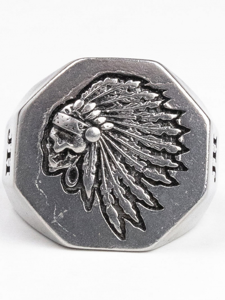 Ring från Jernhest.Geronimo Ring.Artikelnummer: RGo18200- Oktagonformad ring med indianhövding- Material: 100% Kirugiskt StålInnermått:Strlk 7 - 17,3 mmStrlk 8 - 18,1 mmStrlk 9 - 18,9 mmStrlk 10 - 19,8 mmStrlk 11 - 20,6 mmStrlk 13 - 22,3 mm(Reservation för att storlek kan diffa på +/- 0,1mm)Geronimo Ring från Jernhest — oktagonformad ring med indianhövdingsmotivGe din stil en tuff och detaljrik accent med Geronimo-ringen från Jernhest. Den oktagonformade designen kombinerar geometrisk edge med ett tydligt reliefmotiv föreställande en indianhövding, vilket ger ringen karaktär utan att överdriva. Ett utmärkt val för den som vill ha en hållbar, stilfull accessoar med personlig touch.Egenskaper- Material: 100% kirurgiskt stål — slitstarkt, korrosionsbeständigt och ofta lämpligt för känslig hud. - Design: Oktagonformad profil med högupplöst relief av en indianhövding på ytan. Tidlös, maskulin/unik estetik som fungerar lika bra vardag som till fest. - Passform: Bekväm innerprofil; den kantiga utsidan ger ett robust intryck samtidigt som insidan är rundad för komfort. Ringen är unisex och passar både herr och dam som vill ha en markerad look. - Storlekar (innermått): - Strl 7 — 17,3 mm - Strl 8 — 18,1 mm - Strl 9 — 18,9 mm - Strl 10 — 19,8 mm - Strl 11 — 20,6 mm - Strl 13 — 22,3 mm (Reservation för måttabwejkelse +/- 0,1 mm)Varför välja Geronimo-ringen?- Tydligt statement: den oktagonformade siluetten och detaljrika motivet gör ringen till ett tydligt stilval. - Långvarig kvalitet: kirurgiskt stål ger motståndskraft mot missfärgning och repor, vilket gör ringen lämplig för dagligt bruk. - Låg underhållsnivå: kräver minimal skötsel för att behålla sitt uttryck. - Flexibel stil: passar både som ensamring eller i kombination med andra smycken.Skötselråd (kort)Torka av med en mjuk trasa vid behov. Undvik starka kemikalier och långvarig exponering för vatten för bästa hållbarhet.Beställ Geronimo-ringen från Jernhest om du vill ha en robust, detaljrik ring i kirurgiskt stål med en unik oktagonprofil — ett säkert val för den som söker både kvalitet och karaktär.Tack för att du handlar i vår webbshop. Besök oss även i vår butik i Vingåker. Läs mer på www.vfo.se