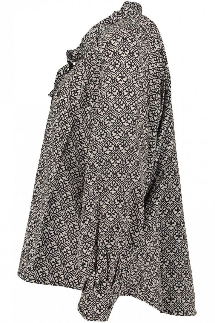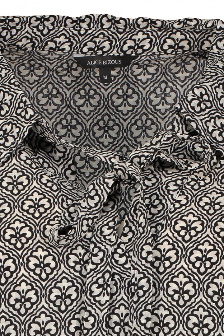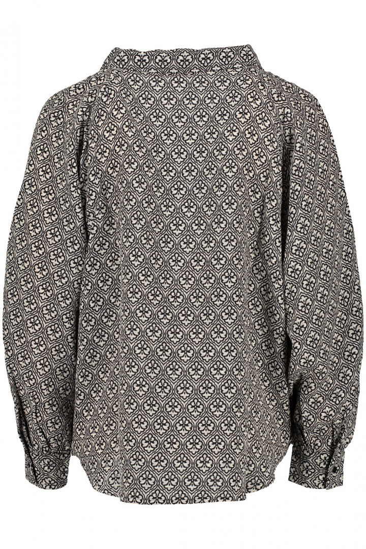 Blus från Joy.Lucinda Blus..Artikelnummer: 68110030- Normal passform- V-ringad med krage- Fyrkantig manschett- Knytdetalj vid kragen- Mönstrad- DamblusTack för att du handlar i vår webbshop. Besök oss även i vår butik i Vingåker. Läs mer på www.vfo.se