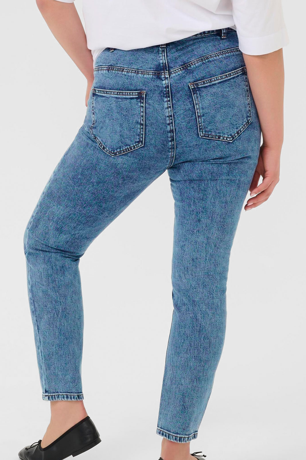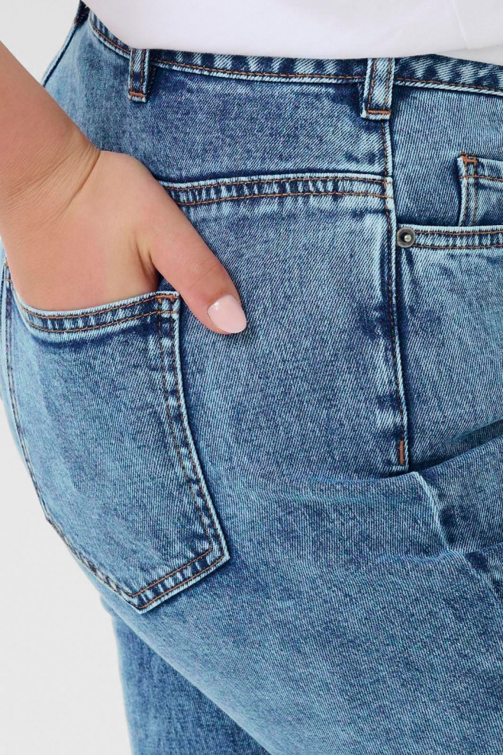 Passformen är designad för kurvorna utan att kompromissa med rörelsefrihet. Den normala midjan sitter bekvämt utan att rida upp, och de raka benen skapar en ren, tidlös profil som känns modern även över längre dagar. Denna jeansmodell är praktisk och mångsidig, perfekt att kombinera med allt från t-shirtar till blus och kavaj för en polerad vardagslook eller mer avslappnade outfits när du vill känna dig bekväm och stilren.