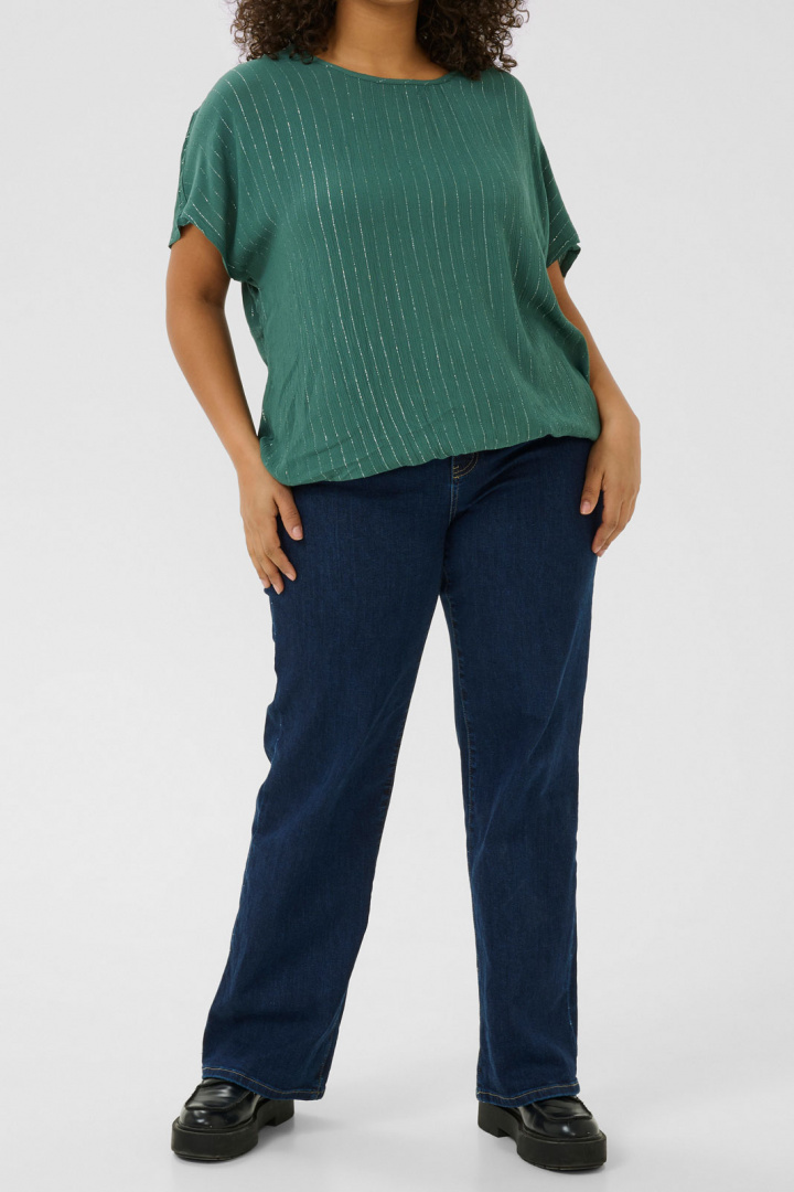 Blus från Kaffe Curve.Kclio Stanley Ss.Artikelnummer: 10582789- Normal passform- Rund halsringning- Glitter randig- Resår i blus slutet- Plus size- Blus damKclio Stanley SS Blus från Kaffe Curve - Elegans i plus sizeUpptäck en perfekt kombination av stil och komfort med Kclio Stanley SS Blus från Kaffe Curve, designad för den moderna kvinnan som uppskattar klassisk elegans. Denna blus i normal passform har en rund halsringning som smickrar alla kroppstyper. Den glittrande randiga designen ger en subtil och elegant touch, vilket gör den till ett utmärkt val för både vardag och festliga tillfällen.Tillverkad i 100% viskos från LENZING™ ECOVERO™, erbjuder denna blus en mjuk och följsam känsla mot huden, samtidigt som den är ett miljövänligt val. Viskosen från LENZING™ ECOVERO™ är känd för sin hållbara produktion och låga miljöpåverkan, så du kan känna dig bra samtidigt som du ser fantastisk ut.En resår i blusens slut ger en perfekt passform och en modern silhuett, vilket gör att blusen sitter snyggt utan att vara för tight. Den stiliga och genomtänkta designen gör att du kan enkelt styla blusen med jeans eller kjol, vilket ger oändliga möjligheter för olika outfits.Kclio Stanley SS Blus är mer än bara en blus - det är ett statement-plagg för kvinnor i plus size som vill uttrycka sin personliga stil. Välj Kclio och lyft din garderob med en tidlös och trendig blus som passar för varje tillfälle. Upptäck skillnaden med Kaffe Curve - där stil och komfort går hand i hand. Perfekt för den stiliga damen som värdesätter både kvalitet och design. Gör den här blusen till en del av din garderob idag!Tack för att du handlar i vår webbshop. Besök oss även i vår butik i Vingåker. Läs mer på www.vfo.se