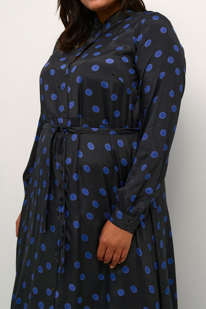Klänning från Kaffe Curve.Kcolivia Dress.Artikelnummer: 10580167- Normal passform- Klassisk krage- Knappknäppning framtill- Fyrkantig manschett- Band i midjan- Prickig - Plus size- Klänning damTack för att du handlar i vår webbshop. Besök oss även i vår butik i Vingåker. Läs mer på www.vfo.se