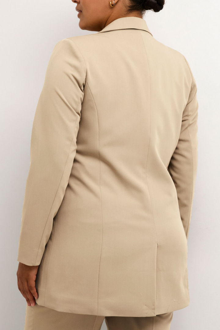 Kavaj från Kaffe Curve.Kcsakira Long Blazer.Artikelnummer: 10582132- Normal passform- Helfodrad- Vadderade axlar- En knapp framtill- Två öppna fickor- Enkelsprund- Plus size- Kavaj damKcsakira Long Blazer från Kaffe Curve - Eleganta detaljer för den moderna kvinnanUpptäck Kcsakira Long Blazer från Kaffe Curve, en stilren kavaj som förenar klassisk design med moderna detaljer för att lyfta din garderob. Denna blazer är perfekt för damen som söker både komfort och elegans i sin klädstil.Med en normal passform som smickrar de flesta kroppstyper, ger Kcsakira Long Blazer en vy som är både stilfull och bekväm. Den är helfodrad, vilket säkerställer att plagget inte bara ser bra ut utan även känns bra mot huden.De vadderade axlarna bidrar till en förfinad och definierad silhuett, vilket inte bara ger extra struktur utan även en modern look som passar utmärkt för både arbetsplatsen och mer avslappnade tillställningar.Blazern har en mittknapp framtill som ger en elegant stängning samt två öppna fickor för att enkelt förvara småsaker. Den enkelsprundade designen kombinerar funktion med stil och gör den enkelt att klä över en blus eller tröja.Tillverkad av en högkvalitativ blandning av polyester, elastan och viskos, erbjuder blazern både hållbarhet och flexibilitet. Detta gör att den behåller sin form och fräschör även efter flera användningar, så att du kan känna dig självsäker och bekväm hela dagen.Kcsakira Long Blazer är speciellt designad för plus size-kroppar, vilket gör den till ett utmärkt val för alla som vill ha snygga kläder som passar bra och framhäver kurvorna på rätt sätt.Förvandla din stil med Kcsakira Long Blazer från Kaffe Curve - en tidlös och mångsidig kavaj som kompletterar din garderob på ett perfekt sätt. Gör ett medvetet val av stil och komfort idag!Tack för att du handlar i vår webbshop. Besök oss även i vår butik i Vingåker. Läs mer på www.vfo.se