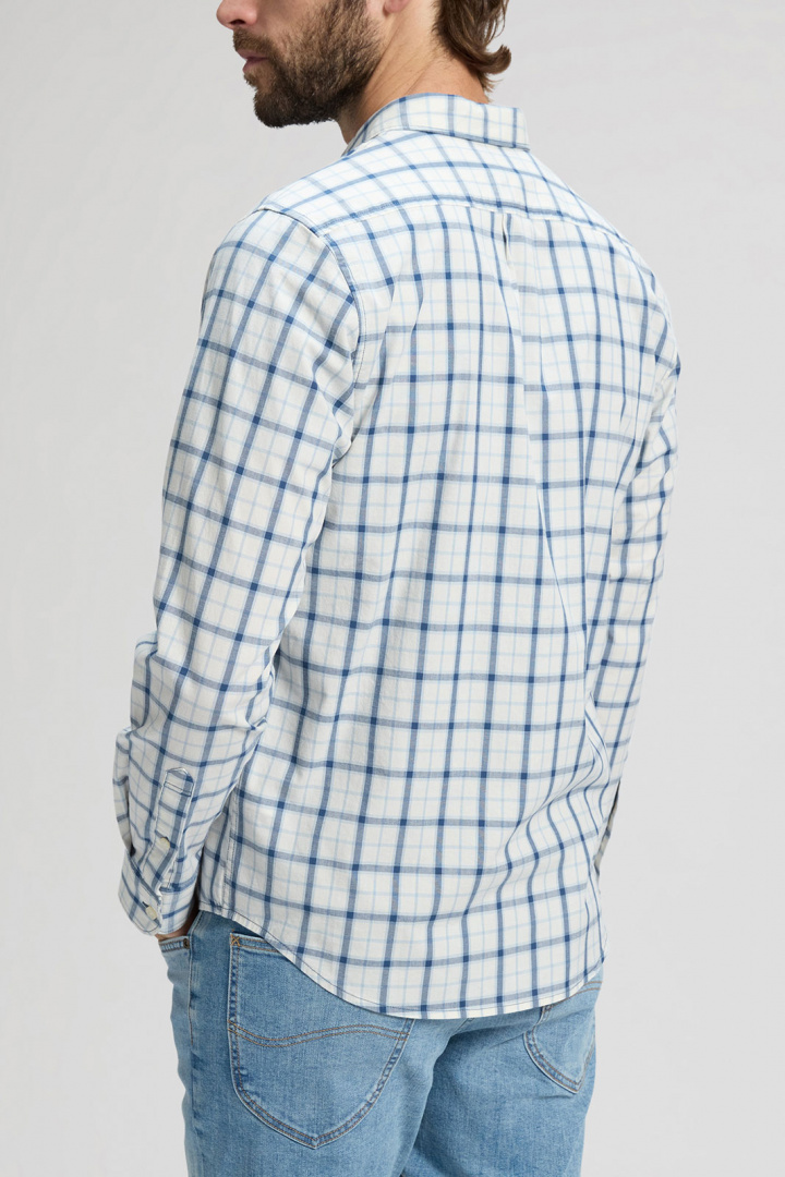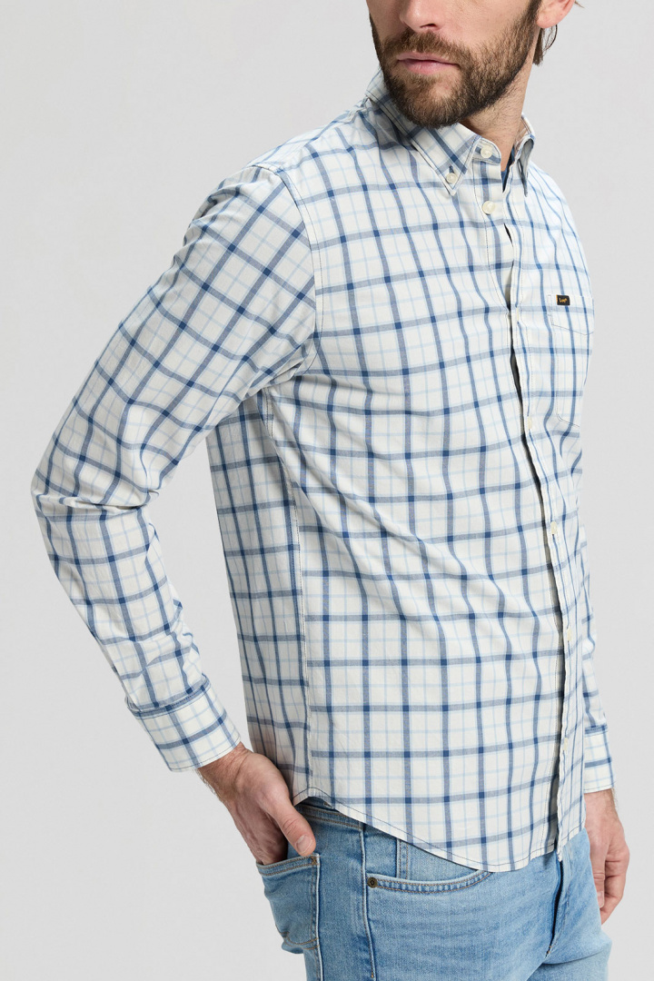 Lee Button Down Skjorta i normal passform är en pålitlig klassiker för herrar som vill ha både stil och komfort i vardagen. Den rutig design kombinerar ett tidlöst uttryck med praktiska detaljer som gör skjortan enkel att använda från arbetsdagen till fritidskvällen. Den ikoniska button-down kragen håller sig snygg och i rätt läge, medan den rundade manschetten bidrar till en avslappnat sofistikerad finish. Denna skjorta har en knappknäppning framtill och en öppen bröstficka som ger en subtil, funktionell detalj utan att kännas överdriven.