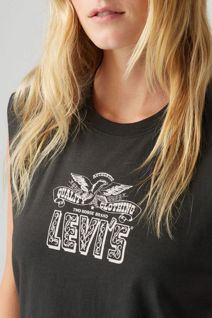 Linne från Levis.Gr Boxy Tank.Artikelnummer: 001MW-0001- Normal passform- Rund halsringning- Printat logotyp- Linne damLevis Gr Boxy Tank T-Shirt för Dam - En Tidlös och Bekväm FavoritUpptäck den perfekta kombinationen av stil och komfort med Levis Gr Boxy Tank T-Shirt, designad för den moderna kvinnan. Denna t-shirt har en normal passform som ger en avslappnad känsla utan att tumma på stilen. Med sin rund halsringning och boxiga silhuett är den både trendig och lätt att bära i både vardag och vid mer avslappnade tillfällen.Tillverkad av 100% bomull är denna tank t-shirt inte bara mjuk och behaglig mot huden, utan också hållbar och lättskött. Bomullen andas väl, vilket gör att du kan bära den hela dagen utan att känna dig obekväm.Det framträdande trycket av Levis logotyp ger t-shirten en cool och urban känsla, vilket gör den till ett utmärkt tillägg till din garderob. Den boxiga designen skapar en modern look som passar perfekt ihop med jeans, shorts eller en kjol. Denna t-shirt är inte bara en modeartikel; den är ett uttryck för livsstil och kvalitet. Genom att välja Levis investerar du i en tidlös klassiker som fungerar i alla säsonger och som aldrig går ur stil. Oavsett om du ska möta vänner, jobba hemifrån eller bara slappna av, är denna tank t-shirt det perfekta valet för en avslappnad och stilren outfit.Ge din klädstil en uppgradering med Levis Gr Boxy Tank T-Shirt och upplev både komfort och stil. Beställ din idag och gör en investering i tidlös modekvalitet!Tack för att du handlar i vår webbshop. Besök oss även i vår butik i Vingåker. Läs mer på www.vfo.se