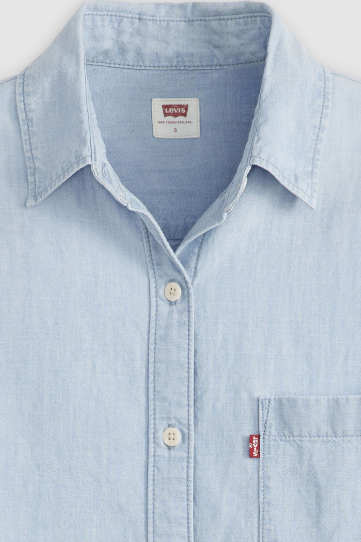Upptäck Levi's Harlie Boyfriend Shirt - en damskjorta som fångar en avslappnad men stilren look. Med avslappnad passform och klassisk krage passar den lika bra för vardagsdagar som för helgens avslappnade set. Den öppna bröstfickan och den genomtänkta knappknäppningen framtill ger en härlig balans mellan enkelhet och detaljrikedom, medan de fyrkantiga manschetterna och emblemlogotypen tillför en distinkt Levi's-känsla som andas kvalitet och stil.