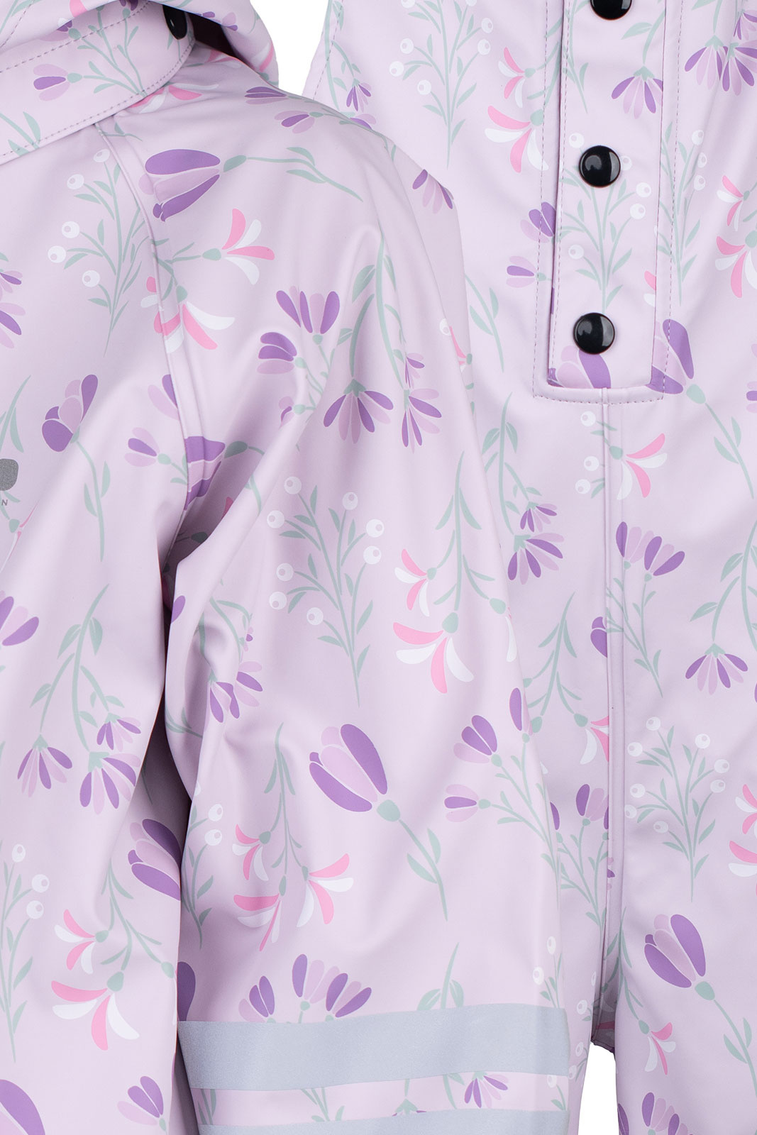 Jackets beskrivning: Den normalpassande jackan är ofodrad för en lätt och smidig känsla, vilket gör den enkel att bära på mildare dagar eller som överklädsel vid behov. Den avtagbara luvan ger flexibilitet när vädret förändras, och den gömda dragkedjan med lock och tryckknapp ger ett snyggt, vind- och vattentätt yttre. Resår i luva, ärmslut och nedtill hjälper till att hålla vätan ute samtidigt som det ger en bekväm passform som följer barnets rörelser. Jackans mönstrade yta gör kläderna lekfulla och attraktiva för små barn, samtidigt som reflexdetaljerna förbättrar synlighet i dagsljus och mörker. Denna jacka står upp mot regn och vind tack vare de svetsade sömmarna och den höga vattenpelaren.