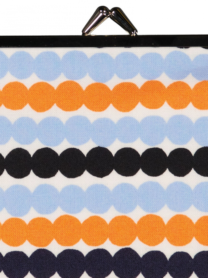 Kompakt och mönstrad liten väska från Marimekko i den karaktäristiska Räsymatto-nyansen. Den här lilla börsen/necessären (15 x 20 cm) har ett enda fack med praktisk knäppning som håller dina viktigaste saker samlade. Tillverkad i 100% bomull, vilket ger en lätt och mjuk känsla samtidigt som materialet är hållbart för dagligt bruk.