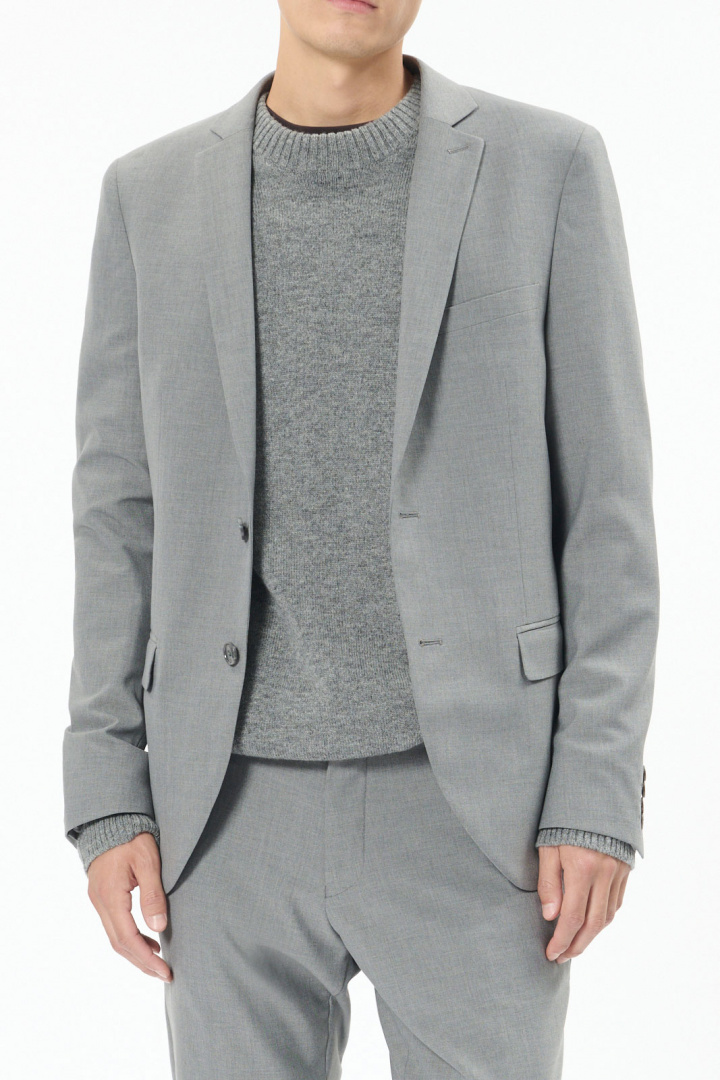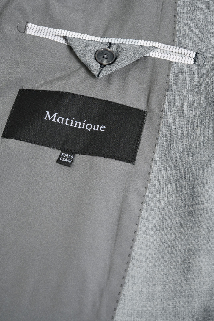 Jonathan Blazer från Matinique är en herrkavaj i slim fit som ger en modern och välskräddad silhuett. Den är helfodrad vilket ger en mjuk känsla mot huden och lång hållbarhet, samtidigt som vadderade axlar behåller kavajens struktur och ger ett snyggt, årsgett uttryck. På fronten hittar du två knappar samt två fickor med lock och en öppen bröstficka som ger en klassisk detalj och plats för en ficka eller pocket square. Backen är utrustad med dubbelsprund för ökad rörelsefrihet och komfort under hela dagen.