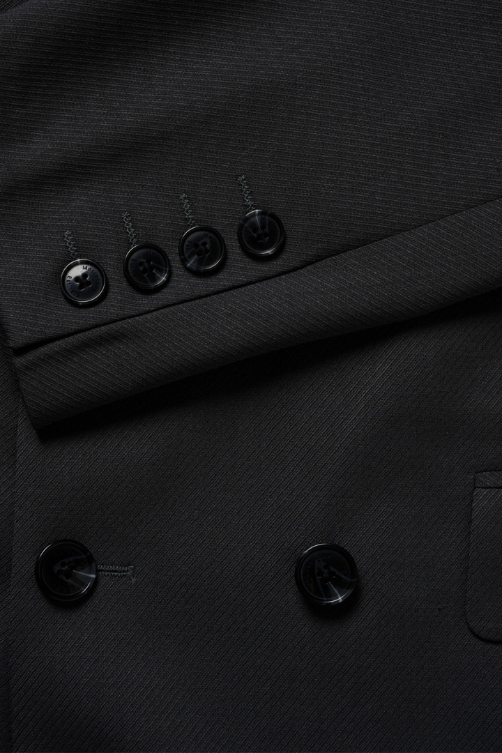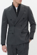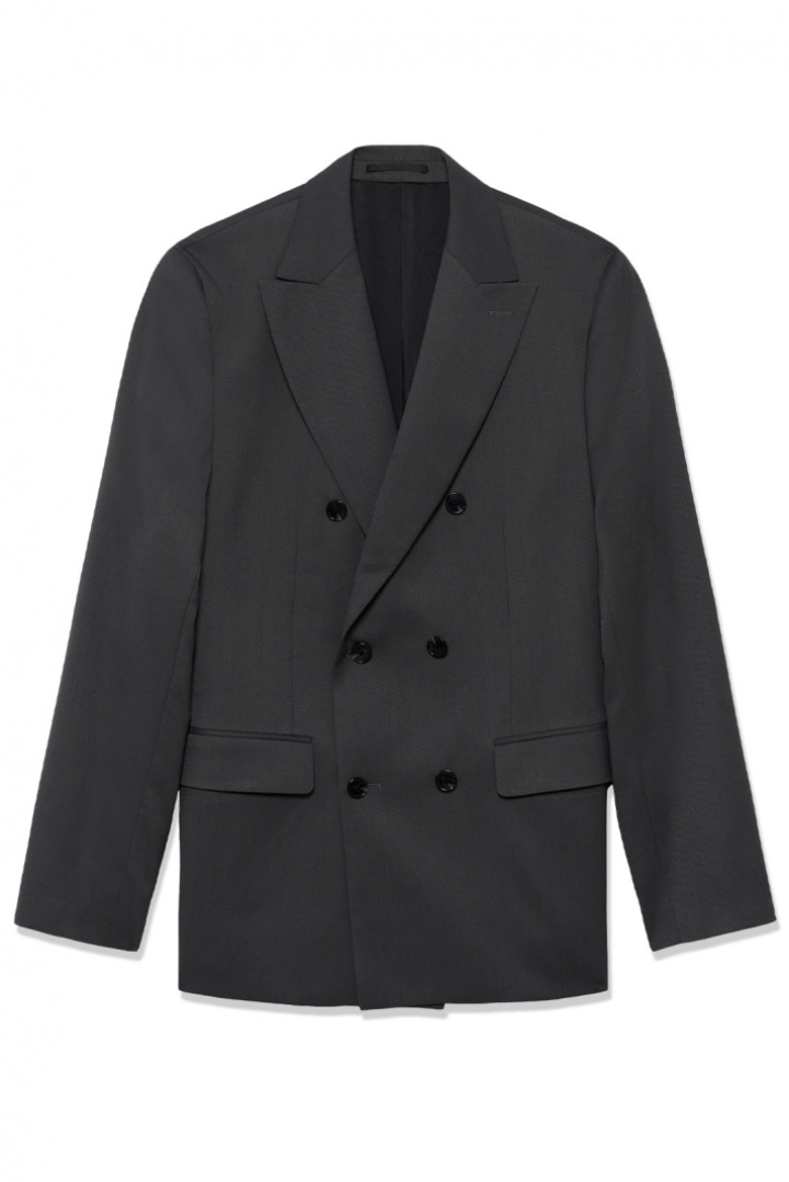 Denna kavaj kombinerar klassiska detaljer med en uppdaterad känsla. Den dubbelsprundade designen ger extra rörelsefrihet, medan de vadderade axlarna bidrar till en distinkt, formfull struktur. Den dubbla knäppningen förstärker den masculina, formella charmen och gör det enkelt att klä upp eller ner efter tillfälle. Praktiska detaljer som två fickor med lock och en öppen bröstficka kompletterar den stilrena looken utan att kompromissa med funktionalitet.
