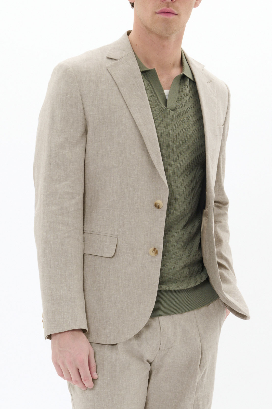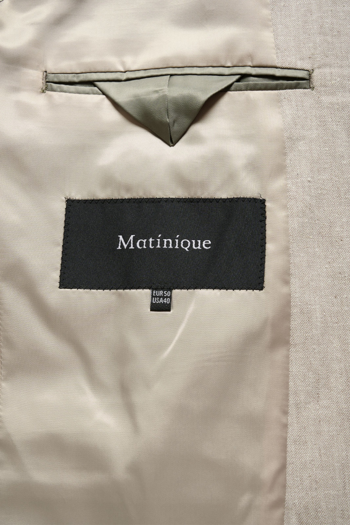 Mageorge Blazer från Matinique är en herrkavaj i regular fit som balanserar traditionell elegans med vardagskomfort. Den halvfodrade konstruktionen gör den lätt att bära i olika sammanhang, medan vadderade axlar ger en skarp och välvd silhuett. Blazerns materialblandning består av linne (52%), bomull (46%) och elastan (2%), vilket ger god andningsförmåga, mjukhet och lite stretch för rörelsefrihet. Fodret är 100% polyester vilket bidrar till en smidig upplevelse när du tar av och på kavajen.