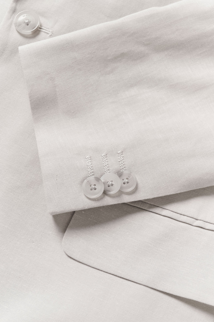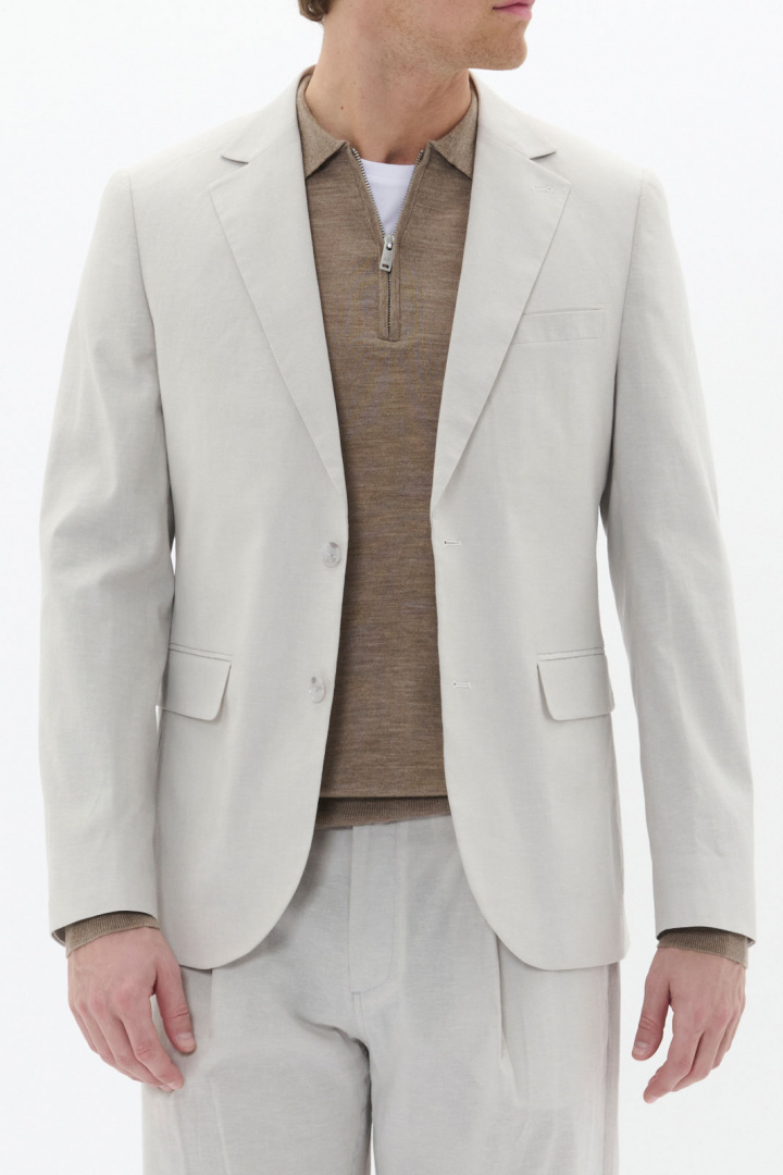 Materialmässigt byggd på en luftigt vävd blandning består Mageorge av 63% bomull, 35% linne och 2% elastan, vilket ger en behaglig struktur, god andningsförmåga och lite stretch för ökad comfort. Fodret är 100% polyester, vilket bidrar till en jämn, lättskött in- och utsteg samt lång hållbarhet. Denna kombination av bomull, linne och elastan gör kavajen behaglig att bära under hela dagen och ger den rätta balansen mellan måttlig textur och stilren finish.