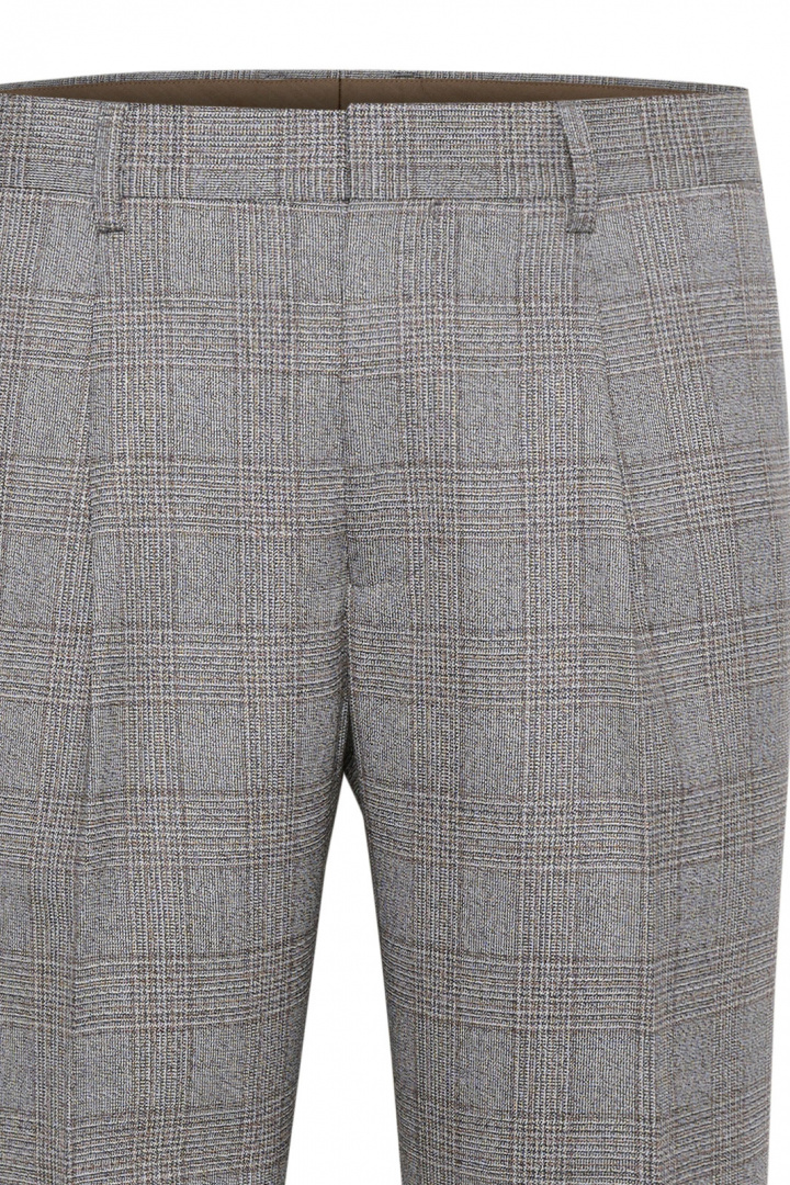Upptäck Maweller Pleat Pant från Matinique - en rutig kostymbyxa för herr som harmonierar klassisk elegans med modern komfort. Byxan har normal midja och en smal benkonstruktion i en avslappnat elegant regular fit, vilket ger en stilren silhuett som passar både kontoret och formella tillfällen. Öppna sidfickor och passpoalfickor baktill ger praktiska förvaringslösningar och en distinkt, välgjord känsla, medan hake och zipgylf säkerställer en funktionell och pålitlig stängning. Den tidlösa rutiga designen gör Maweller Pleat Pant till ett mångsidigt val som enkelt matchas med skjorta och blazer för en komplett affärslook.