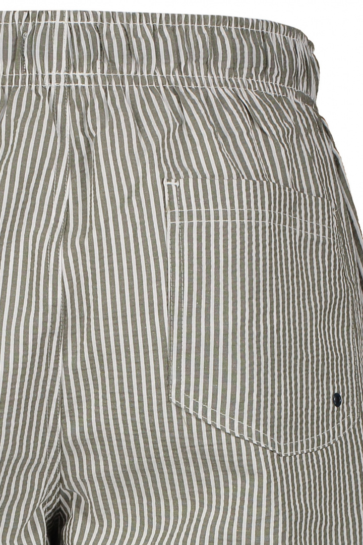 Dessa badshorts har en tidlös randig design som ger ett stilrent intryck oavsett var du bär dem. Den praktiska resårmidjan tillsammans med snörningen säkerställer att byxorna sitter tryggt på plats under hela dagen. För enkelhetens skull är de utrustade med öppna sidofickor, perfekt för att förvara småsaker, och en bakficka med resår som ger extra säkerhet för dina värdesaker.