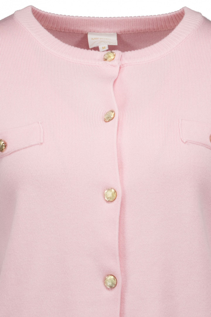 Kofta från Mingel.Cardigan S/s 1076 Mingel.Artikelnummer: MM1086- Normal passform- Rundad halsringning- Knappknäppning framtill- Imitationsfickor- Mudd i krage, ärmslut och nedtill- Finstickad- Kofta damUpptäck Mingel Cardigan S/s 1076 - en finstickad damkofta i normal passform som passar lika bra till vardag som till lite finare tillfällen. Den rundade halsringningen ger en mjuk, feminin halslinje och den praktiska knappknäppningen framtill gör det enkelt att variera stilen. Med imitationfickor får plagget en modern detalj utan att tillföra onödig volym, och muddarna i krage, ärmslut och nedtill hjälper till att hålla formen samtidigt som helheten känns avslappnat snygg.Koftan är tillverkad i en mjuk viscose-nylonblandning (85% viskos och 15% nylon), som ger ett fint fall, behaglig känsla mot huden och bra hållbarhet. Den fina stickningen känns luftig och ger ett exklusivt intryck utan att kompromissa med komforten.Mingel Cardigan S/s 1076 är ett pålitligt val i garderoben tack vare sin mångsidiga design. Den passar över en enkel topp eller blus och används lätt tillsammans med både jeans och kjol, vilket gör den till ett praktiskt plagg som håller säsong efter säsong. Välj denna kofta när du vill ha en stilren, bekväm och hållbar cardigan som står för kvalitet utan att överdriva.Tack för att du handlar i vår webbshop. Besök oss även i vår butik i Vingåker. Läs mer på www.vfo.se