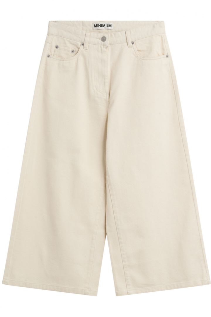 Caroline Culotte Jeans 4579 från Minimum är designad för dig som vill ha en modern och bekväm jeansstil utan att kompromissa med passform. Den normal midjan sitter bekvämt runt höfter och midja, medan den culotte-inspirerade silhuetten med vida ben skapar en luftig, trendig look som passar både vardag och lite festligare tillfällen. Den femficksmodellen håller en klassisk jeansestetik och den praktiska knappen och zip-flyet gör det enkelt att komma i och ur paret.