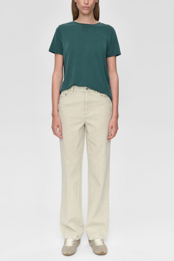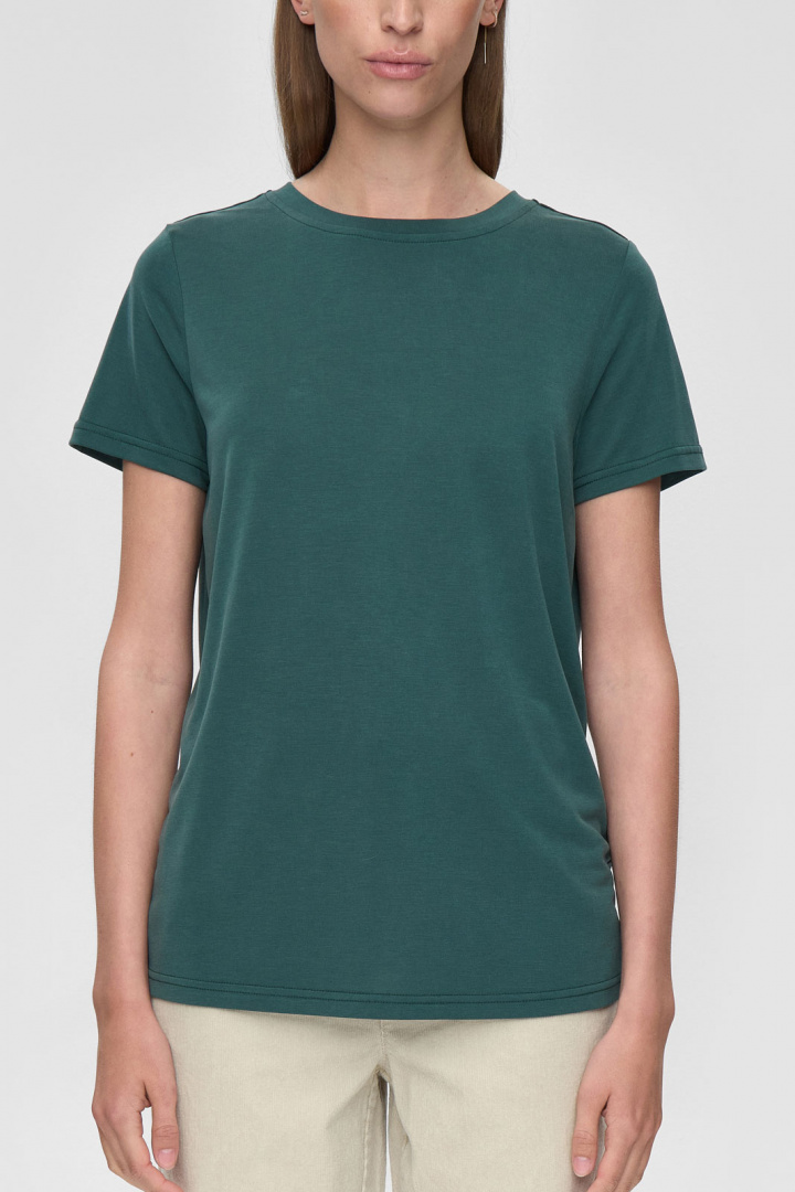 T-shirten har en rundad halsringning som ger en feminin och elegant touch till den klassiska designen. Den tidlösa stilen gör att den enkelt kan kombineras med både jeans, kjolar eller under en blazer för en mer uppklädd look.