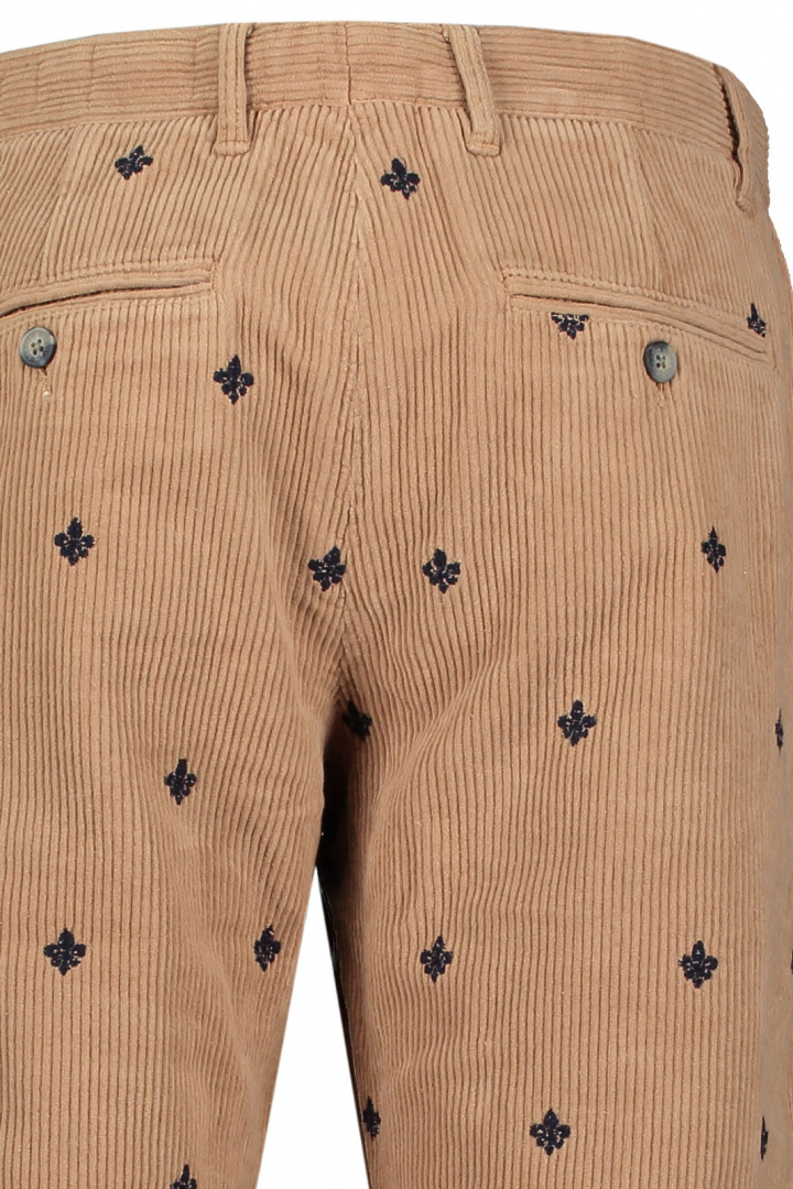 De broderade detaljerna ger byxorna en exklusiv känsla och lyfter din stil till nya höjder. Den tidlösa corddesignen ger en distinkt look som kan kombineras med både skjortor och tröjor, vilket gör dem till en flexibel del av din garderob.