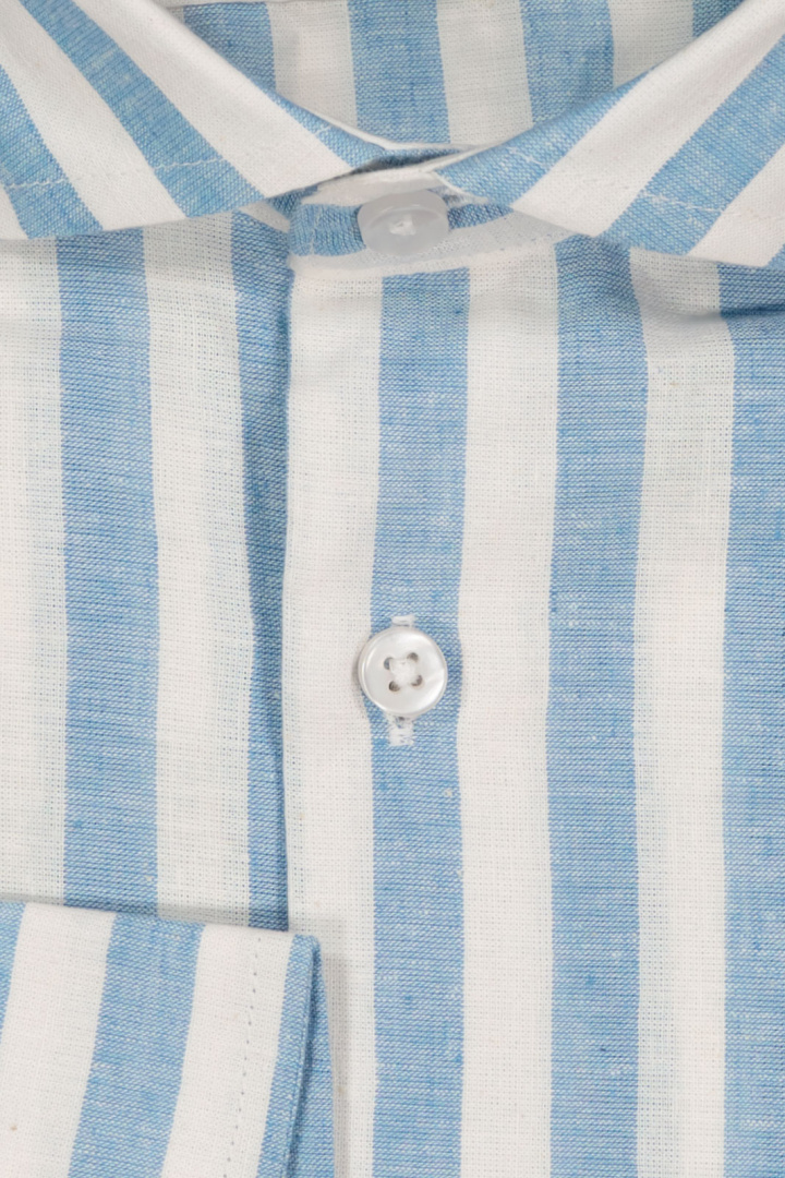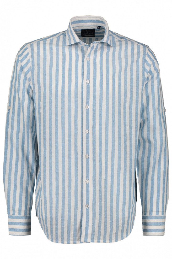 Skjorta från Mortimer&Armstrong.Shirt 957 Mortimer & Armstrong.Artikelnummer: FFSH957- Modern fit- Cut away krage- Knappknäppning framtill- Rund manschett- Randig- Skjorta herrMortimer & Armstrong Skjorta 957 - Modern Fit för den Stilsäkra MannenUpptäck Mortimer & Armstrong Skjorta 957, en perfekt kombination av stil och komfort för den moderna mannen. Med sin trendiga design och noggrant utvalda material är denna skjorta ett måste i varje garderob.Skjortan har en modern fit som framhäver din kropp på ett smakfullt sätt utan att kännas tight. Den eleganta cut away-kragen ger en sofistikerad look, perfekt för både kontoret och mer avslappnade tillfällen. Knappknäppningen framtill och de rundade manschetterna adderar en klassisk touch, medan den stiliga randiga designen ger ett subtilt men distinkt mönster.Tillverkad av 70% högkvalitativ bomull och 30% linne ger denna skjorta en fantastisk komfort och andningsförmåga, vilket gör den idealisk för både varma och kalla dagar. Den mjuka och lätta känslan mot huden gör att du kan bära den hela dagen utan att känna obehag.Med skjorta 957 från Mortimer & Armstrong får du inte bara en stilren produkt, utan även en skjorta som är utformad med fokus på kvalitet och hållbarhet. Den är lätt att matcha med både jeans och chinos, vilket gör den till ett mångsidigt alternativ för alla tillfällen. Satsa på stil och komfort med Mortimer & Armstrong Skjorta 957. Låt din personlighet lysa igenom med en skjorta som är lika unik som du är!Tack för att du handlar i vår webbshop. Besök oss även i vår butik i Vingåker. Läs mer på www.vfo.se